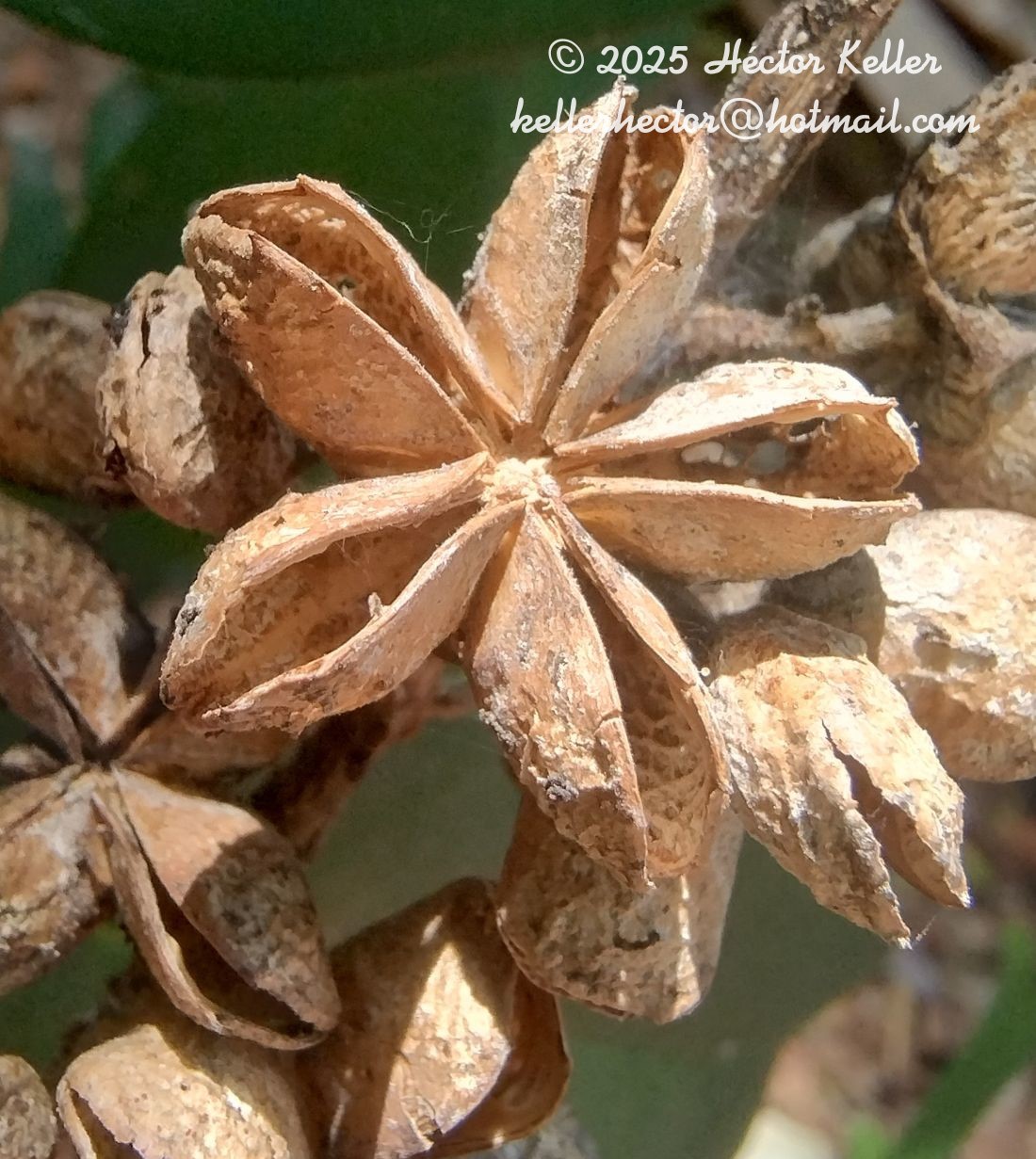 Observaciones: Florece desde mayo hasta noviembre, se han observado algunas floraciones en enero, marzo y abril. Fructifica desde agosto hasta marzo. Nombres vernáculos. “Caá-hay-guazú”, “ibirá-tay”, “jaborandi”, “jaborandi de coutinho”, “yaguáñandi”, “yaguarandí”.