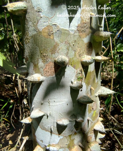 Arbusto o árbol de 4-9(-12) m de alto, dioico, con tricomas estrellados diminutos, y en menor cantidad tricomas simples; tronco con aguijones cónicos, hasta de 4 cm de largo, aguzados; ramas jóvenes con aguijones rectos, espaciados. Hojas con láminas imparipinnadas, con 3-6(-8) pares de folíolos, elípticos, de 2-6 × 0,7-2 cm, asimétricos, base aguda, ápice acuminado, borde crenado y en la base ligeramente revoluto, casi glabros o con tricomas estrellados diminutos, con abundantes puntos traslúcidos, algunos con un aguijón en el nervio central de la cara abaxial,sésiles o subsésiles; raquis a menudo con aguijones rectos hasta de 1 cm de largo. Inflorescencias en panículas terminales. Flores 5-meras, pediceladas; sépalos triangulares, ca. 0,6 mm de largo, ciliados; pétalos elípticos, de 1,5-2,5 mm de largo. Flor estaminada con estambres de 2,5 mm de largo; pistilodio de 1,2 mm de largo. Flor pistilada con ovario (1-)2-carpelar, estilos breves y estigmas discoides adnatos; estaminodios diminutos en la base del disco. Frutos folículos globosos, de 4-5 mm de diámetro, pardo-rojizos a negruzcos, glandulosos; cáliz persistente. Semillas negras, brillantes.