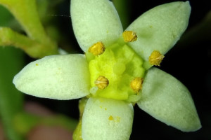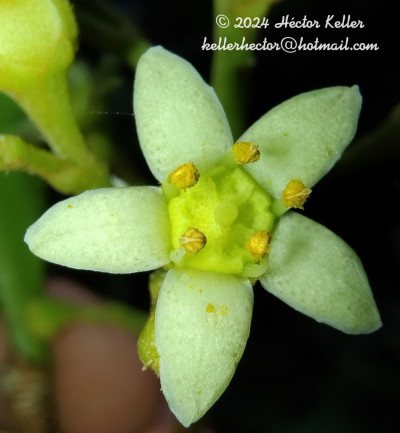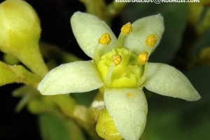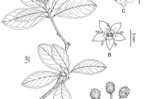 Arbustos o subarbustos hasta árboles de (2-)3-6(-8) m de alto; tronco hasta de 15 cm de diámetro; ramas rugosas longitudinalmente, con tricomas adpresos hacia la porción superior, el resto glabras. Hojas alternas a subopuestas; pecíolo de 8-17 mm de largo, ensanchando en la base y en el punto de articulación; láminas simples, obovadas a elípticas, de (4,5-)7-12 × 2,5-5 cm, base aguda, ápice redondeado, con 9-10 pares de nervios secundarios, puntos glandulares translúcidos, cara adaxial con tricomas adpresos dispersos, cara abaxial glabra, subcoriáceos. Inflorescencia una panícula pauciflora hasta de 5 cm de largo, terminal o axilar; ejes con tricomas adpresos. Flores 5-meras, ca. 10 mm de diámetro, sépalos ovadotriangulares, de 1,5-2 mm de largo, pubescentes y con puntos glandulares en la cara externa; pétalos ovados a elípticos, de 5-7 mm de largo, pubescentes y con puntos glandulares en la cara externa, carnosos, blancuzcos a castaño-claros y con manchas rojizas; estambres con filamentos ca. 2 mm de largo, glabros; disco cupuliforme, ondulado en el margen; ovario con protuberancias cónicas; estilo grueso, estigma capitado. Fruto una cápsula globosa de 2-2,5 cm de diámetro, de dehiscencia septicida y parcialmente loculicida, leñosa, cubierta de espinas cónicas; endocarpio castaño claro, liso, desprendiéndose a la madurez del resto del fruto. Semillas ovoideo-elipsoideas, lisas, castañas.