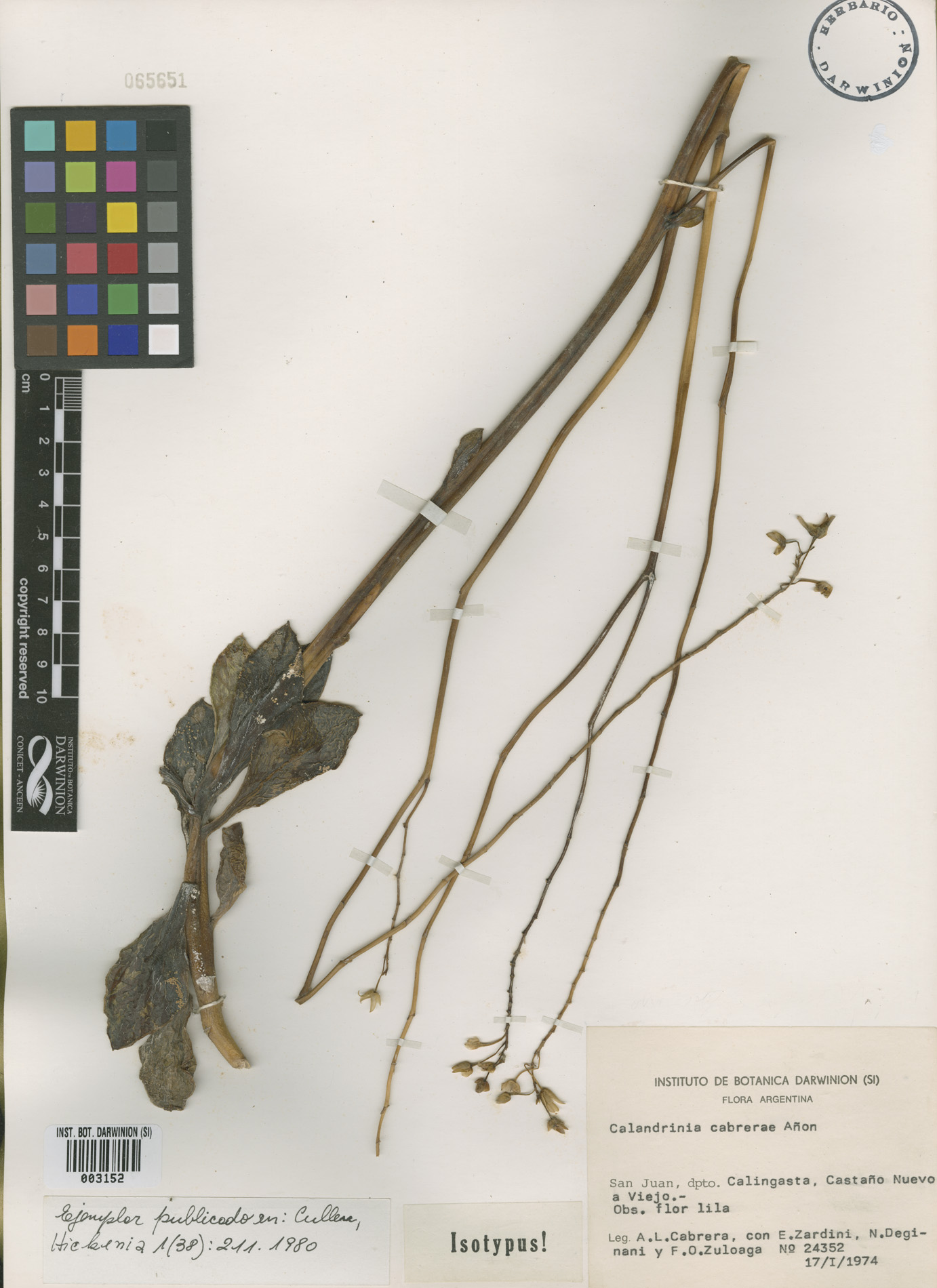 Tipo de Calandrinia cabrerae Añon