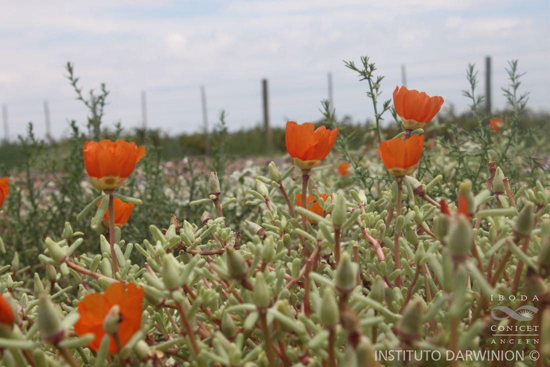 Panta anual, glabras, con los tallos algo carnosos, rojizos. Hojas linear-lanceolada a espatulada, de 1,5-3,5 x 0,2-0,5 cm, obtusas, de ápice truncado. Flores solitarias, de ca. 4 cm de diámetro, con los sépalos ovados, de 8-12 x 8-9 mm; pétalos obcordados, de 20-30 mm de largo, purpúreos con una mácula basal negra; flores rodeadas por 2-5 hojas apicales y bracteolas lineares, de 8-10 mm de largo; estambres 8-10 o mas; estilo de ca. 10 mm de largo, con 5 ramas estigmáticas de 2 mm de largo. Fruto una cápsula, de 7-10 mm de largo, ocupada en su mayor parte por el opérculo acampanado hasta cónico, de ca. 6 mm de largo. Semillas de 1,7-2 mm de diámetro, achatadas, con 4 hilares dorsales de grandes espinas anseriformes, de 0,3-0,4 mm de largo, pardo-rojizas.