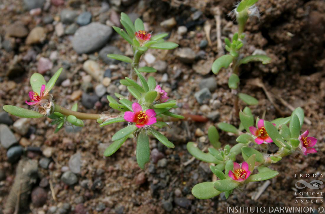 Planta anual, postrada o decumbente, con la raíz fina y tallos de 4-20 cm de alto. Hojas oblongo-cuneiformes o espatuladas, de 7-12(-20) x 3-4 mm, de ápice obtuso o redondeado; pelos estipulares de 2-6 mm de largo, poco abundantes, crespos, persistentes. Flores de 7-8 mm de diámetro, rodeadas por verticilos de 8-9 hojas; sépalos de 2,5-5 mm de largo, uno deltoideo, el otro obtuso y angostamente marginado, ambos apiculados-cuculiformes; pétalos oblongos o algo obovados, de 5-7 x ca; 3 mm; estambres de ca. 20; estilo de 1-1,5 mm de largo con (4-)5-7(-8) ramas estigmáticas oblongo-lineales de mismo largo. Fruto una cápsula ovada-globosa, de 2,5-4 mm de largo, con opérculo hemisférico de 1,5-2,5 mm de largo, con la porción basal subpedicelada o con un pedicelo de 1 mm de largo, dehiscencia hacia el tercio inferior o un poco más arriba. Semillas cocleado-globosas, de 0,6-0,7 mm de largo, generalmente algo rostradas, de color gris-violáceo o más oscuras, lisas o con pequeños tubérculos, a veces con tintes acerados el irisaciones superficiales.