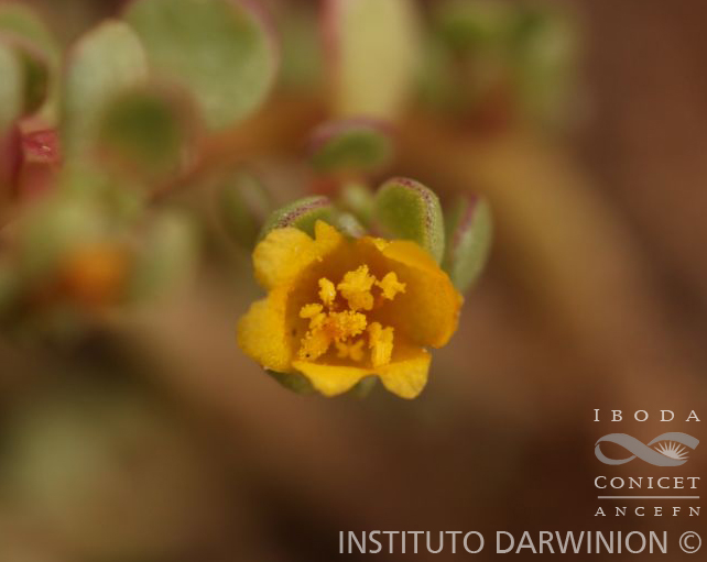 Plantas con raíces mas o menos engrosadas y suberosa con los tallos postrados, de 3-8 cm de largo, ramosas. Hojas alternas u opuestas, suborbiculares o cuneiformes, de 2-4 mm de largo, planas; pecíolos hasta de 2 mm de largo; pelos estipulares ausentes o inconspicuos; flores solitarias o agrupadas de a dos, o frecuentemente una de ellas abortadas, de 3-4 mm de diámetro, rodeadas por verticilos de 4 hojas, a veces se formas inflorescencias cimosas por ejes desarrollados a cada lado de las flores; sépalos ovados hasta subcuadrados, de 2,5 x 3 mm, subcarinados y de márgenes extendidos; estambres 6-10 sobre un anillo estaminal de 0,8 mm de ancho; estilo de 1,5-2 mm de largo, con 2(-3) ramas estigmáticas oblongo-lineales, de 0,8 mm de largo. Fruto una cápsula, dehiscentes debajo de la mitad, de 2,5-3,5 mm de largo; opérculo hemisférico. Semillas con tubérculos, negras.