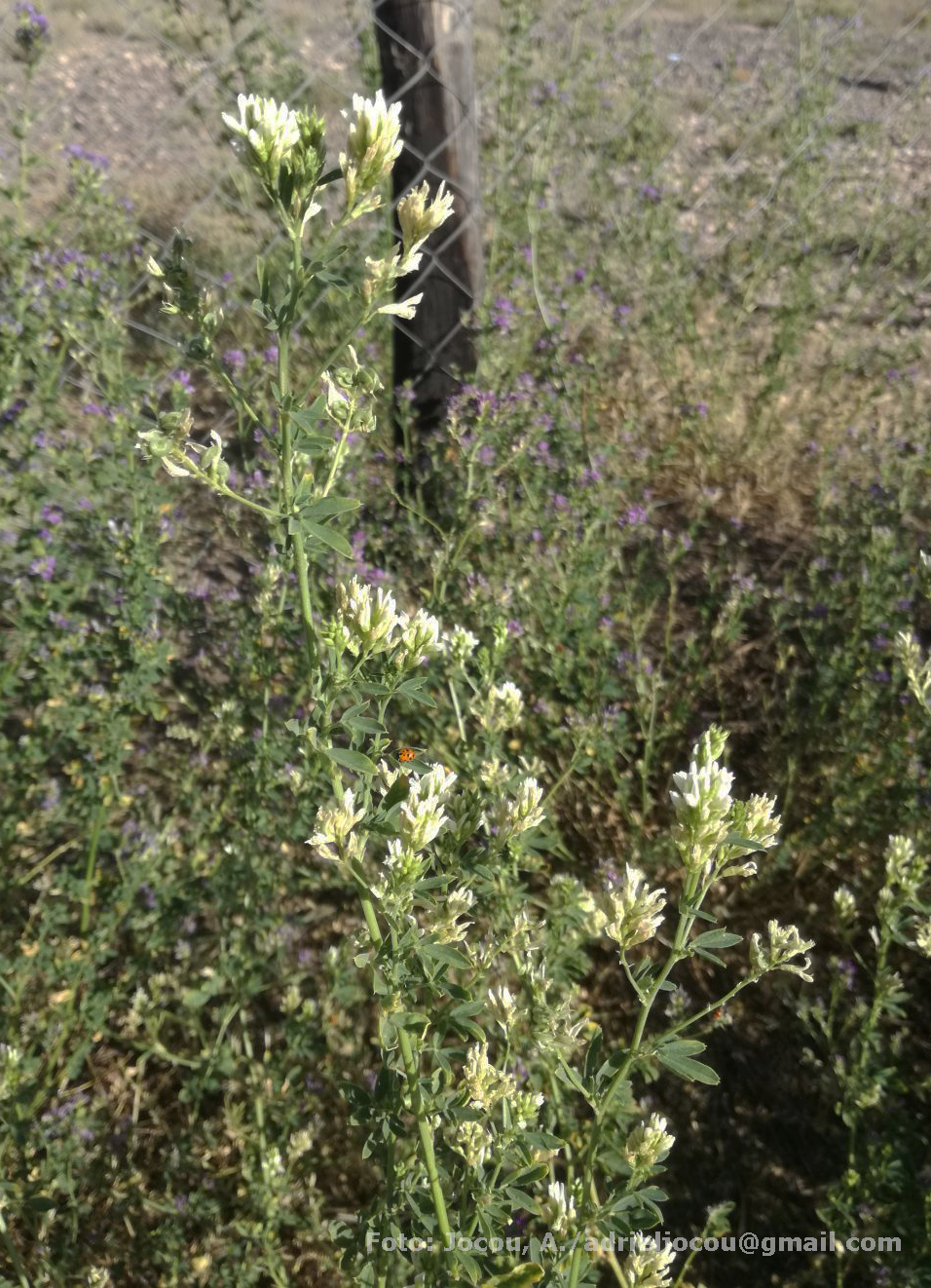 Se han encontrado escapadas de cultivo en Santa Cruz, M. falcata L. y M. varia Martyn, especies muy semejantes a M. sativa. M. falcata se reconoce por la colo¬ración amarilla de sus flores y por poseer legumbre recta o falcada. M. varia es un híbri¬do de M. sativa x M. falcata; se diferencia de éstas por las flores azulado-verdoso-amari¬llentas y las legumbres con 1-2 espiras.
