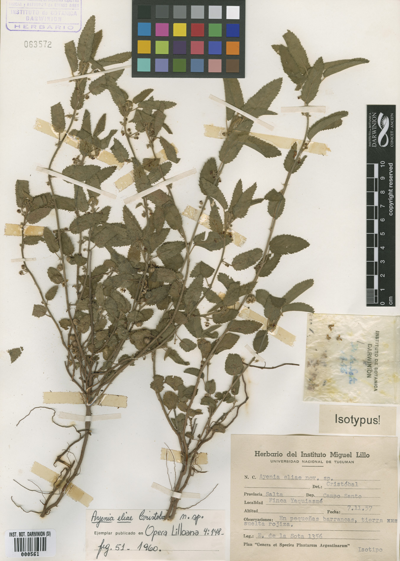 Material Tipo: SINTIPOS. Argentina. Salta. Campo Santo, Finca Yaquiasmé, en pequeños barrancos, tierra suelta rojiza, 7 Feb 1957, E. R. de la Sota 1356 (CTES 0001681, LIL 000887, LIL 000888, LIL 0008871, UC 1245109, S-R-11370, SI 000561).