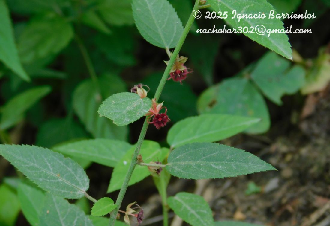 Subarbustos erectos, de hasta 1 m de altura, ramas hasta de 4 mm de diámetro, finamente pubescentes. Estípulas 4-5 mm. Hojas membranáceas, pecíolo 1-2 cm, lámina ovado-lanceolada, aguda, base redondeada, de 5 (7) × 1,8 (2,5) cm, aserrada, epifilo e hipofilo levemente pubescentes, pelos pequeños, estrellados y simples, abundantes sobre las venas. Inflorescencias hasta 8-floras. Capucha de la uña de los pétalos triangular, margen posterior eroso y setuloso, lámina tan larga como el largo total de la capucha sobresaliendo notablemente; porción libre de los filamentos tan larga como el tubo estaminal, estaminodios inclinados hacia adentro, planos y rodeando estrechamente al estilo que es largo y completamente exerto.