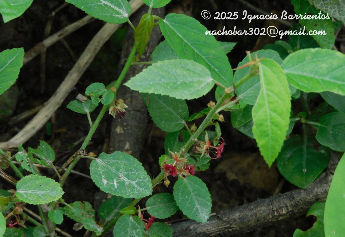 Subarbustos erectos, de hasta 1 m de altura, ramas hasta de 4 mm de diámetro, finamente pubescentes. Estípulas 4-5 mm. Hojas membranáceas, pecíolo 1-2 cm, lámina ovado-lanceolada, aguda, base redondeada, de 5 (7) × 1,8 (2,5) cm, aserrada, epifilo e hipofilo levemente pubescentes, pelos pequeños, estrellados y simples, abundantes sobre las venas. Inflorescencias hasta 8-floras. Capucha de la uña de los pétalos triangular, margen posterior eroso y setuloso, lámina tan larga como el largo total de la capucha sobresaliendo notablemente; porción libre de los filamentos tan larga como el tubo estaminal, estaminodios inclinados hacia adentro, planos y rodeando estrechamente al estilo que es largo y completamente exerto.