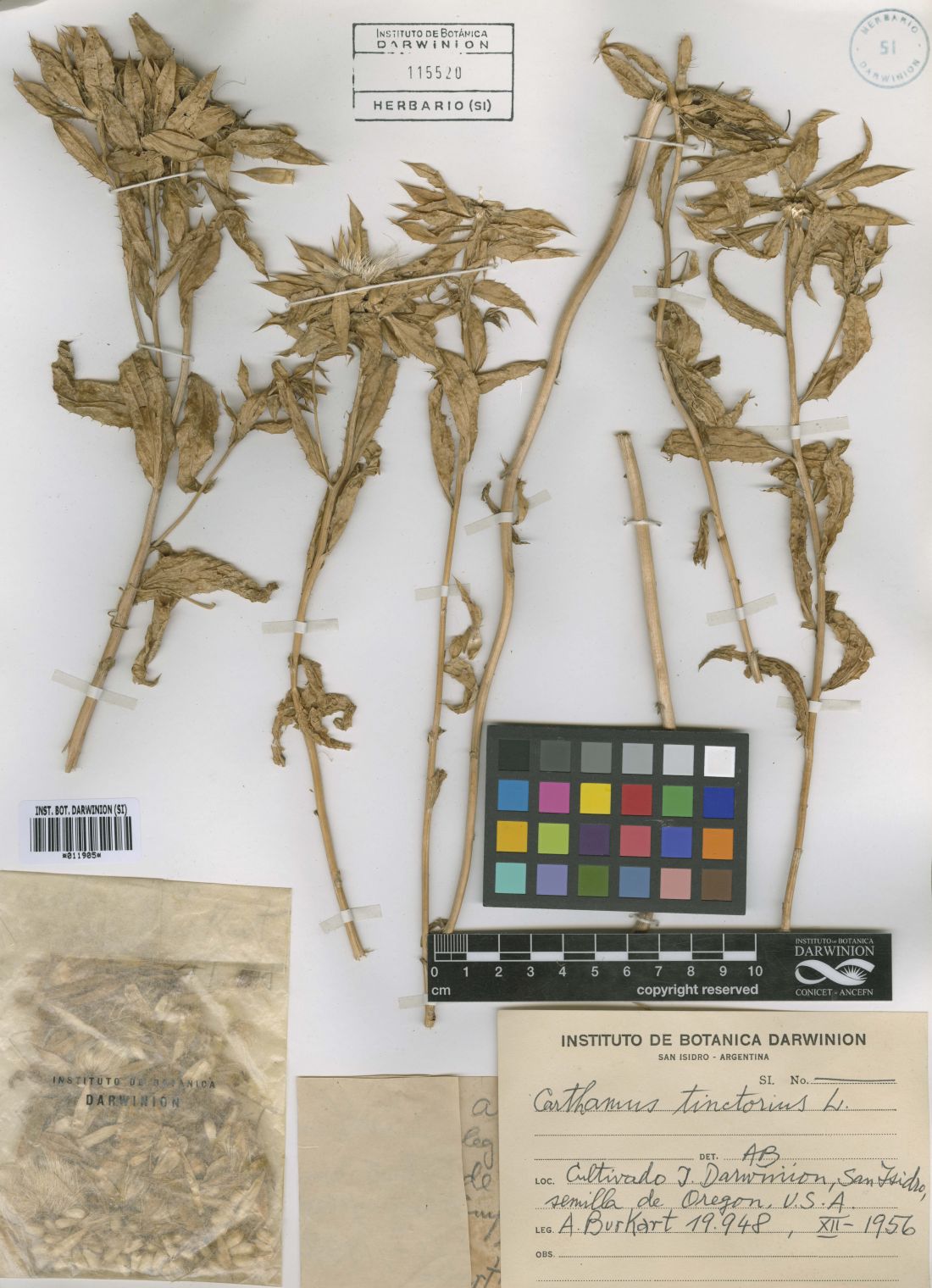 Observaciones: Nombre vulgar y usos. «Falso azafrán». Se la cultiva como ornamental, oleaginosa y tintórea, siendo la Argentina un importante productor. A veces se la utiliza como adulterante del azafrán (Crocus sativus L.).