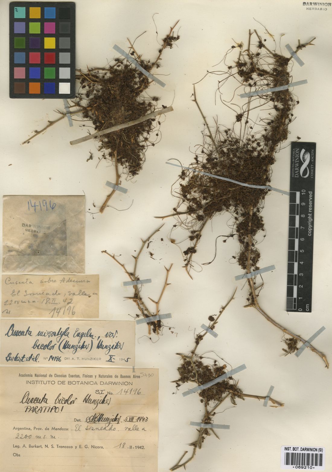 Variedad endémica de los Andes del sur de Mendoza. El ejemplar tipo es parásito de Chuquiraga oppositifolia D. Don.