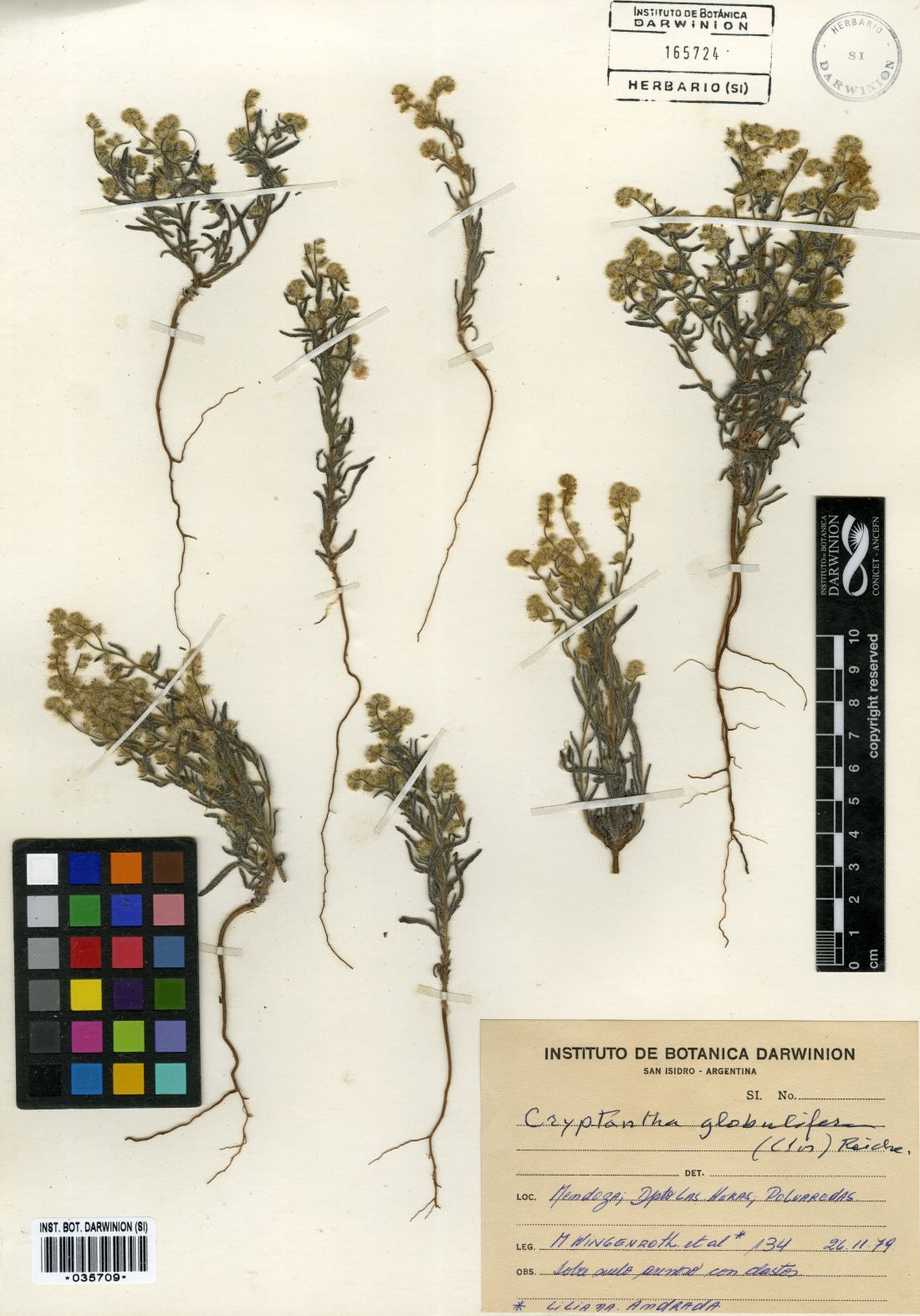Observaciones: De acuerdo a Ariza Espinar (2006), Cryptantha globulifera habita en la provincia de La Pampa. El único material identificado como tal por el autor revela, sin embargo, que pertenece a C. patagonica.