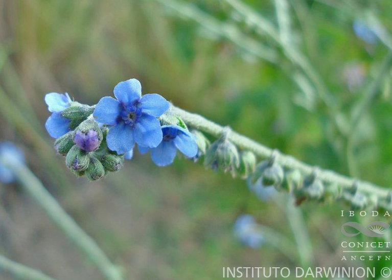 Hierbas anuales hasta de 1 m de alto, densamente seríceas, en ocasiones híspidas. Hojas con la lámina oblanceolada o elíptico-lanceolada, de 3-25 × 0,7-7 cm, membranácea, serícea en ambas superficies, con tricomas de base pustulosa en la superficie adaxial, base decurrente u obtusa. Inflorescencias en cincinos paniculados, ebracteados. Flores subsésiles con pedicelo hasta de 2 mm de largo; cáliz viloso, en ocasiones piloso, de 2-3 mm de largo, con 5 lóbulos ovados; corola celeste, con tubo de 2-2,5 mm de largo, limbo de 8-12 mm de diámetro. Clusas con el exocarpo dorsal con gloquidios escasos, rodeado por un margen con gloquidios más densos. Número básico de cromosomas x = 12.
