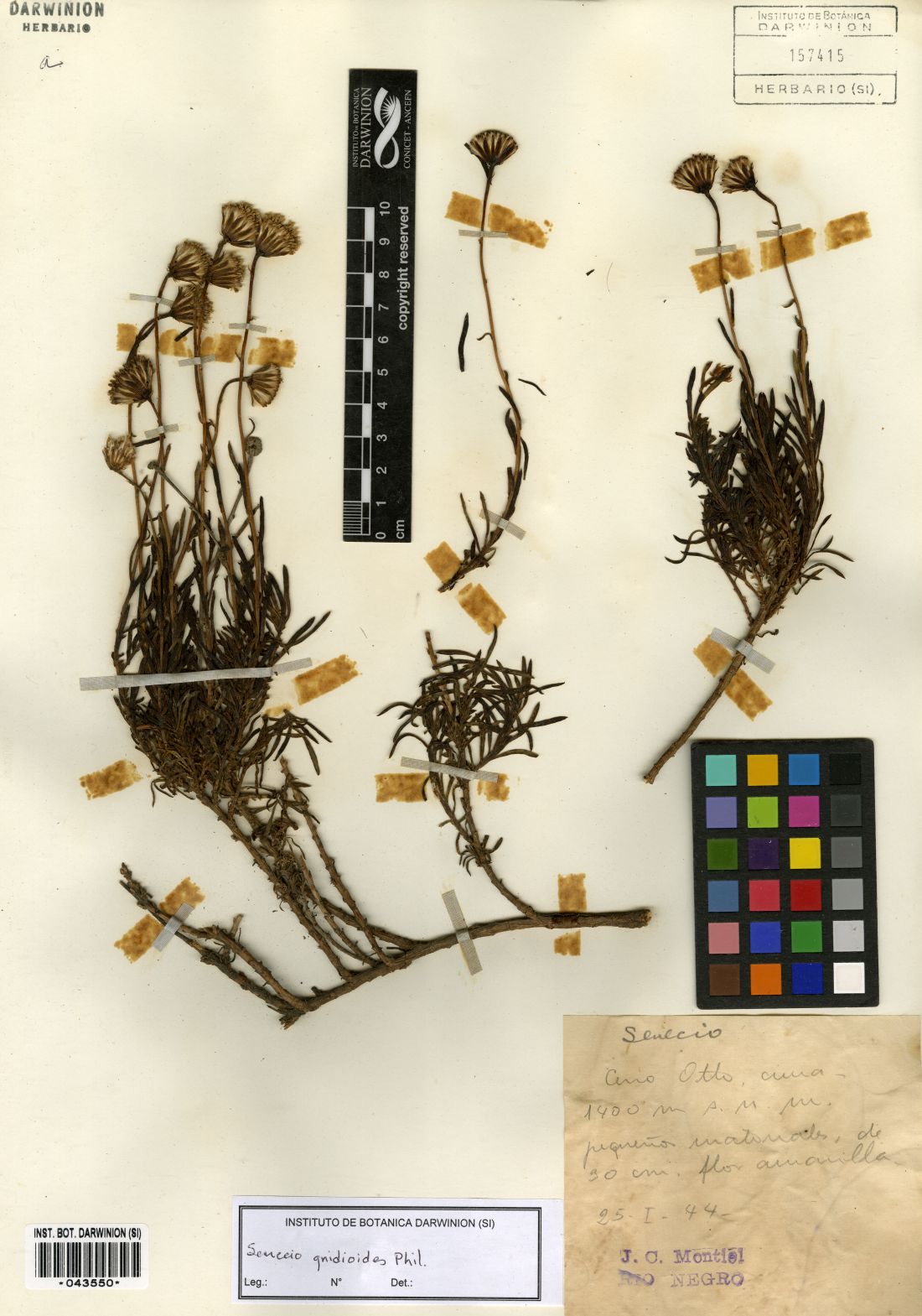 Sufrútices bajos, ramosos, de 15-40 cm de alto, glabros; tallos ascendentes, los nuevos densamente hojosos en la parte inferior y casi desnudos, escapiformes, en la superior. Hojas alternas, sésiles, lineares, de 2-3 cm × 1-2 mm, levemente atenuadas en la base, acuminadas en el ápice, margen entero o con 1 ó 2 dientes a cada lado, de color verde claro. Capítulos discoides, solitarios o dispuestos en cimas corimbiformes, 2-3-céfalas, terminales. Involucro acampanado, de 8-10 × 7-8 mm; brácteas del calículo lineares, cortas; filarios 12-13, oblongo-lineares, agudos y penicilados en el ápice, glabros en el dorso. Flores isomorfas, 20-40, con corolas amarillas, tubulosas, ca. 8 mm de largo, 5-lobadas, lóbulos triangulares, ca. 0,7 mm de largo. Aquenios cilindroides, ca. 4,5 mm de largo, costados, glabros. Papus blanco ca. 8 mm de largo.