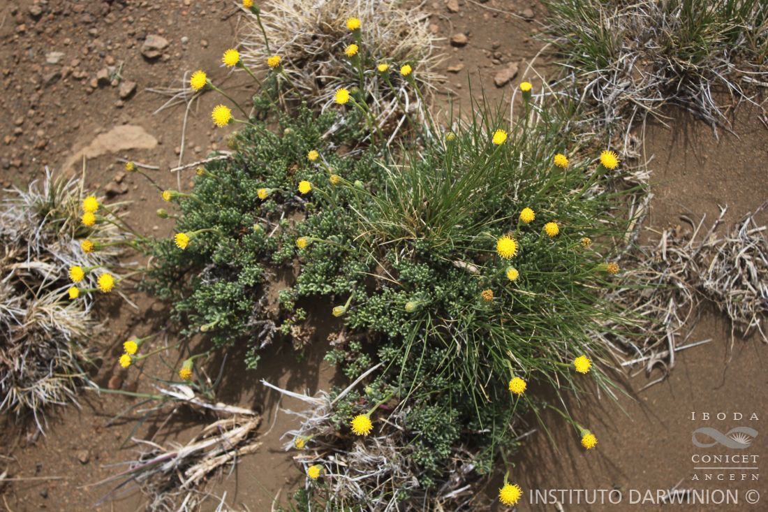 Sufrútices bajos, ramosos, de 15-40 cm de alto, glabros; tallos ascendentes, los nuevos densamente hojosos en la parte inferior y casi desnudos, escapiformes, en la superior. Hojas alternas, sésiles, lineares, de 2-3 cm × 1-2 mm, levemente atenuadas en la base, acuminadas en el ápice, margen entero o con 1 ó 2 dientes a cada lado, de color verde claro. Capítulos discoides, solitarios o dispuestos en cimas corimbiformes, 2-3-céfalas, terminales. Involucro acampanado, de 8-10 × 7-8 mm; brácteas del calículo lineares, cortas; filarios 12-13, oblongo-lineares, agudos y penicilados en el ápice, glabros en el dorso. Flores isomorfas, 20-40, con corolas amarillas, tubulosas, ca. 8 mm de largo, 5-lobadas, lóbulos triangulares, ca. 0,7 mm de largo. Aquenios cilindroides, ca. 4,5 mm de largo, costados, glabros. Papus blanco ca. 8 mm de largo.