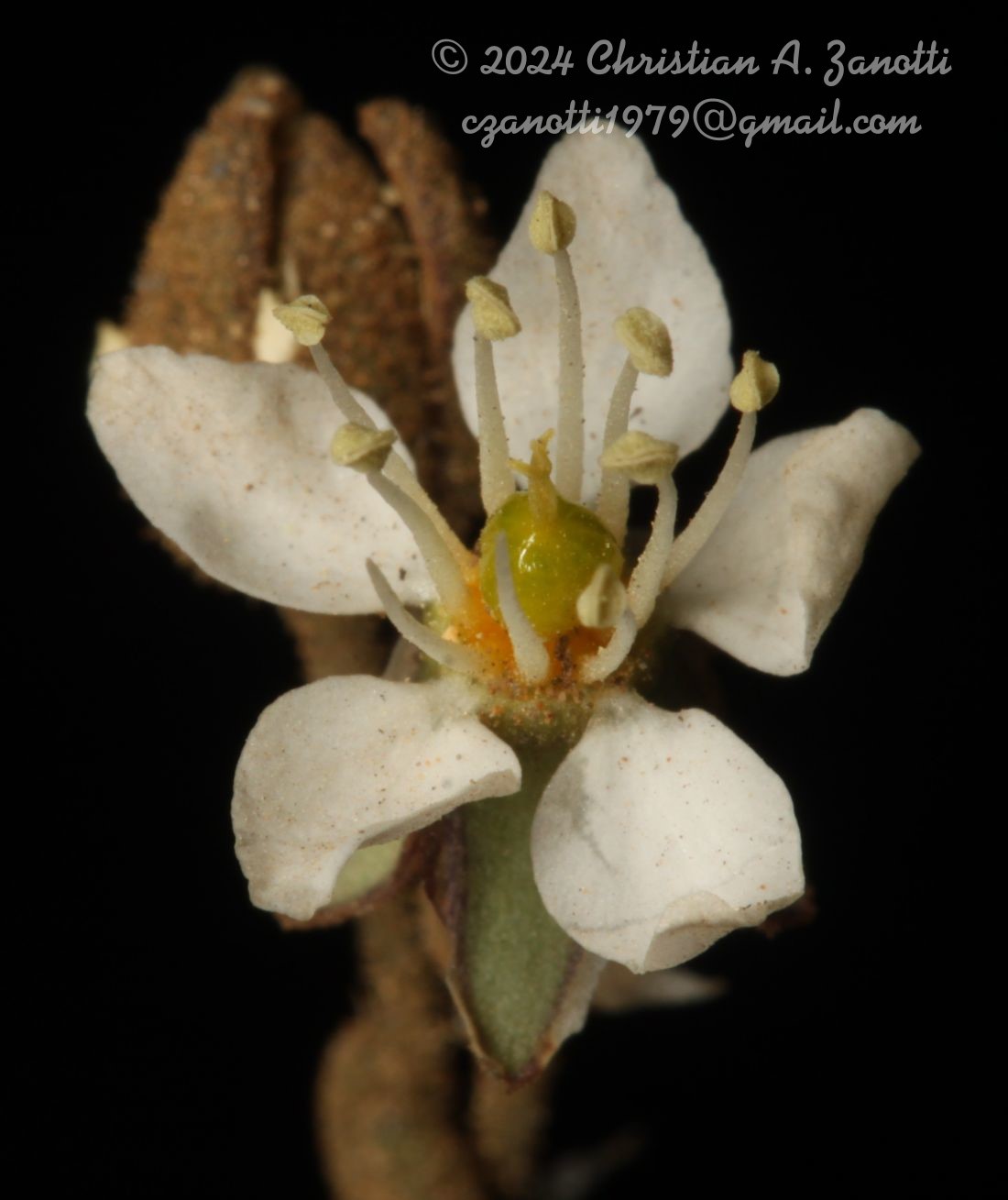 Hierbas perennes, cespitosas, de 7-13 cm de alto; tallos glabros o cubiertos con una pubescencia glandulosa muy corta. Hojas fasciculadas, lineares-lanceoladas a espatuladas, de 2-15 × 0,8-1 mm, mucronadas, densamente glandulosa-pubescentes; estípulas lanceoladas, de 3-5,4 mm de largo, enteras, hialinas. Inflorescencia 1(-2)-flora, pseudoterminal, raramente axilar; pedicelos filiformes, de 0,7-12 mm de largo, densamente glanduloso-pubescentes; sépalos ovados, de 4-5,4 mm de largo, generalmente teñidos de púrpura en los márgenes escariosos, glanduloso-pubescentes, carnosos; pétalos ovados, de 3,6-4,5 × 0,4-1,4 mm, blancos; estambres 10; estilos 3, de 1-1,8 mm de largo, connados en 2/3 de su longitud. Fruto una cápsula de 4-5,4 × 2-2,5 mm, dehiscente hasta la base; pedicelos reflexos. Semillas de contorno redondeado, de 0,7-1 mm de largo, delicadamente ornamentadas, rodeadas por un ala escariosa entera de 0,1-0,3 mm de ancho, de color marrón oscuro y con una tonalidad plateada.
