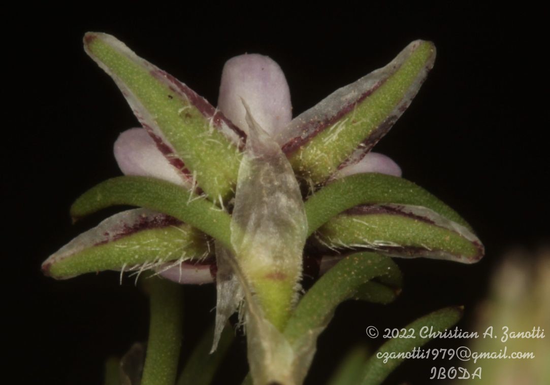 Spergula villosa Pers. Syn. Pl. 1: 522. 1805 Persoon cita, al final de la breve descripción de Spergula villosa “Hab. cum priore”, ya que anteriormente a la descripción de este taxón, este autor describió a Spergula grandis, con la localidad y el herbario donde se encuentra el tipo depositado “Hab. in Monte-Video (Herb. Juss.)”, siendo este por lo tanto la misma localidad y herbario que le corresponde a Spergula villosa. En P, donde se encuentran los materiales depositados de la colección de Antonie Jussieu, se encontró un pliego que perteneció a este botánico y que fue donado al Museo de París en 1857; el mismo presenta una etiqueta original de la letra manuscrita de Commerson en la cual se lee: “Spergula? Montevideo-Herb. Commerson”, por lo tanto, este ejemplar corresponde al holotipo de S. villosa. Por último, cabe aclarar que los ejemplares etiquetados como isotipos depositados en C (C 10009264! y C 10009265!) y determinados bajo Spergularia villosa por Pedersen, se excluyen del material tipo, ya que en la cartulina de herbario se lee que la proveniencia es Buenos Aires y según las mismas también fueron colectadas por Commerson.