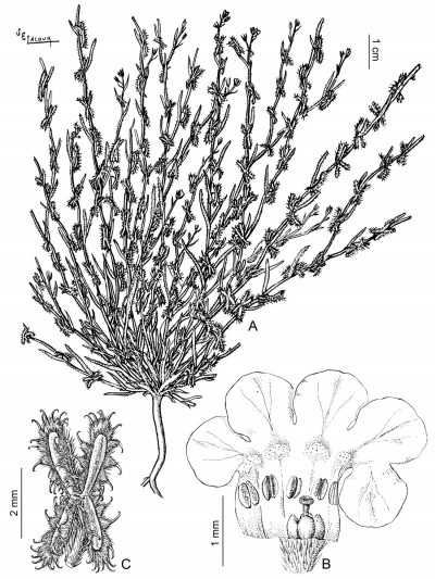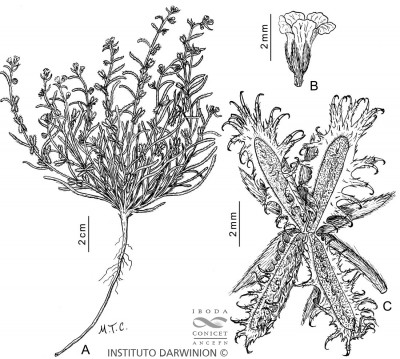 Hierbas hasta de 15 cm de alto. Hojas con lámina linear, de 0,1-0,2 × ca. 0,05 cm. Inflorescencias en pseudoracimos terminales, en ocasiones bracteadas. Flores con cáliz de 2-2,5 mm de largo; corola con tubo de 2,5-3 mm de largo, lóbulos redondeados ca. 2 mm de diámetro. Fruto con clusas de 2-4 mm de largo, con margen provisto de dientes poco conspicuos.