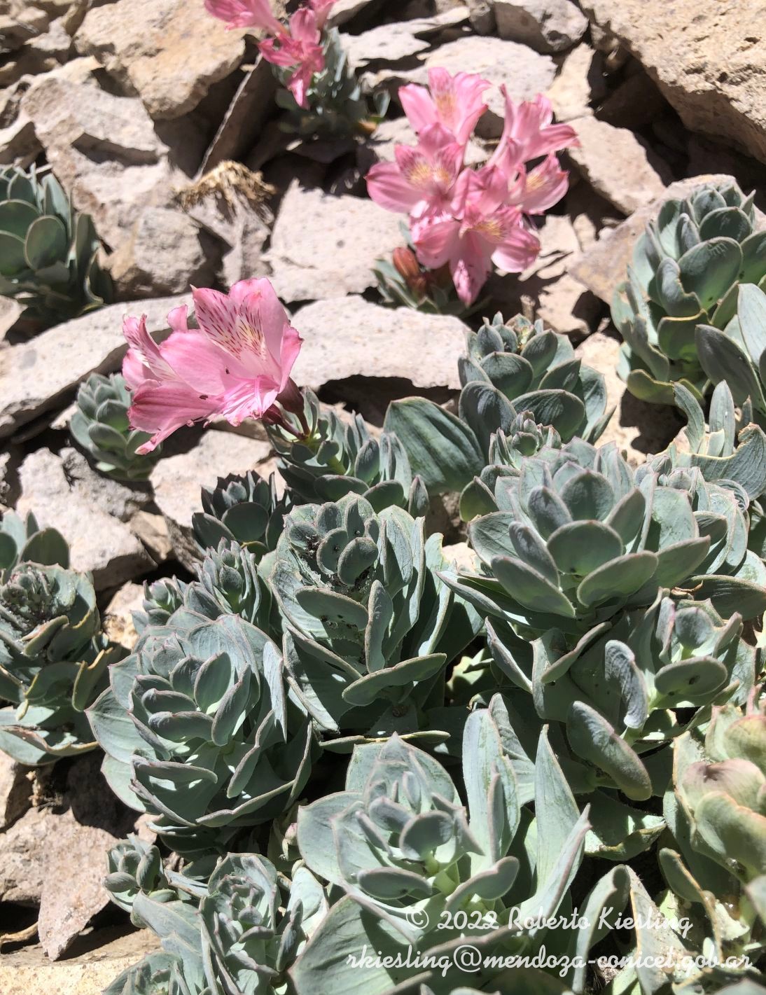 Plantas de 6-8 cm de alto. Rizoma flexuoso. Tallos en general breves sobre la superficie del suelo, erguidos, 1-4-floros. Hojas de 12-30 x 3-15 mm, con frecuencia rosuladas, espatuladas, coriáceas, en los bordes papiloso-denticuladas. Inflorescencia 1-4-radiada; radios casi siempre unifloros. Flores amarillas cernuas o casi erguidas. Ovario obovoide-truncado, de 4-9 x 3,9-6 mm. Perigonio de 23-40 mm. Tépalos unguiculados, libres hasta la base, los exteriores de 27-38 x 11-16 mm, los interiores de 23-40 x 5-6 mm. Estambres aproximadamente de la misma longitud del perigonio o algo menores; anteras de 1,8-2,7 mm. Estilo de la misma longitud que los estambres, brevemente trífido.