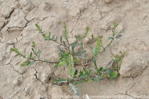 Hierbas anuales, a menudo estrigosas, con tricomas retrorsos de 0,05-0,3 mm de largo, rara vez puberulentas en la parte superior. Tallos de (6-)15-57 cm de alto, erectos, ramificados apicalmente. Hojas basales con pecíolos de 0,5-4 cm de largo; láminas (1-)2(-3)-pinnatífidas o pinnatisectas, hasta de 7 cm de largo, con 3-7 lóbulos laterales; lóbulos serrados a dentados, pinnatífidos o rara vez pectinados; hojas caulinares sésiles, hasta de 3 cm de largo, pinnatífidas, pinnatisectas o rara vez pectinadas, base auriculada. Racimos densos, alargados durante la fructificación, a menudo retrorsamente estrigulosos, rara vez puberulentos; pedicelos fructíferos delgados, fuertemente recurvados en la parte media, ascendentes en la base, ligeramente aplanados, distalmente divaricados, de 2-3 mm de largo, pubescentes, a veces subglabros abaxialmente excepto en la base. Sépalos oblongos de 0,5-1 mm de largo, persistentes, ápice blanco, pilosos en la superficie abaxial; pétalos reducidos a vestigios lineares de 0,2-0,6 mm de largo; estambres 2, medianos; filamentos de 0,5-0,7 mm de largo; anteras ca. 0,1-0,2 mm de largo; glándulas nectaríferas de 0,05-0,3 mm de largo. Frutos dehiscentes, obovoide-orbiculares a obovoide-oblongoides, de 3-3,7 × 2,5-3,2 mm, glabros, con ápice emarginado, estrechamente alado, escotadura apical de 0,3-0,5 mm de largo; estilo de 0,05- 0,1 mm de largo, inserto en la escotadura apical. Semillas castaño- rojizas, ovoide-oblongoides, a menudo angostamente marginadas o aladas, al menos distalmente, de 1,2-1,4 × 0,7-0,9 mm, alas de 0,06-0,1 mm de ancho; cotiledones incumbentes.
