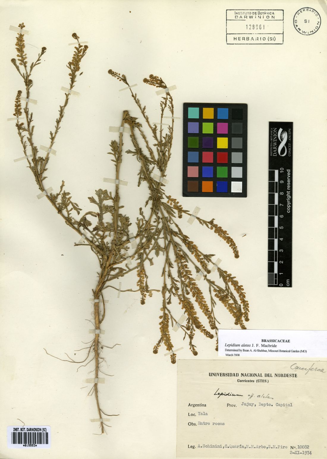 Observaciones: El grado de división de la lámina foliar es muy variable en esta especie, pero ninguna de las variantes amerita el reconocimiento de taxones infraespecíficos. Esta variación foliar va desde láminas finamente 2-pinnatisectas, con lóbulos pectinados con segmentos filiformes, hasta 2- pinnatisectas o simplemente pinnatífidas, con lóbulos enteros o dentados. Hitchcock (1945) citó a los ejemplares de Lepidium auriculatum provenientes de la provincia de Chubut como L. bipinnatifidum Desv., pero esta úlitma especie no se encuentra en la Argentina.