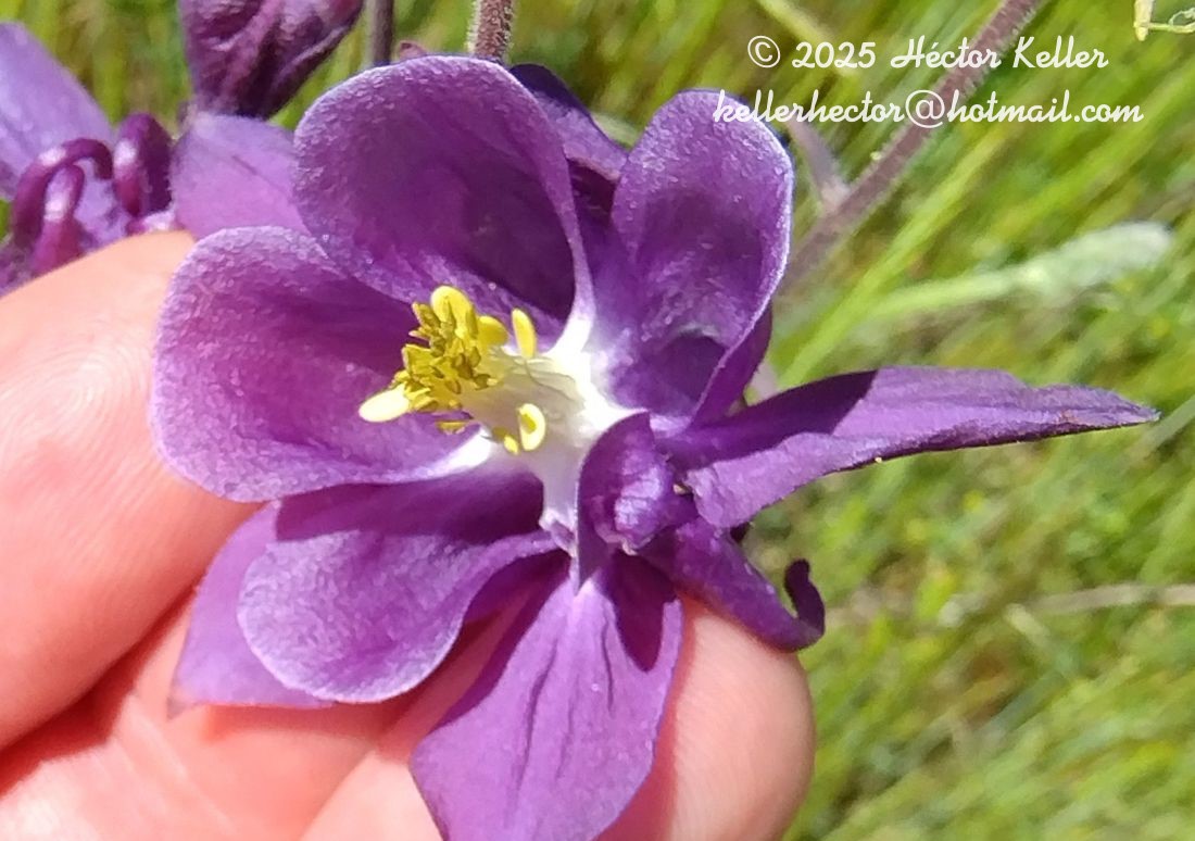 Hierba con tallos de 35-80 cm de largo; ramifi cados en su parte superior, ramas angulosas, glabras o pilosas. Hojas basales en roseta, pecioladas; láminas (1-)2-3-folioladas, segmentos 2-fidos o 3-fidos con lóbulos redondeados y crenados en el ápice, generalmente glaucos en la cara abaxial; las caulinares inferiores con pecíolos largos, las superiores brevemente pecioladas con la base ensanchada en corta vaina sub-amplexicaule, 3-folioladas con segmentos enteros o lobulados, cara adaxial glabra y la abaxial con tricomas cortos y blancos. Flores nutantes, violáceas, ocasionalmente rojas o blancas, pedunculadas; sépalos de 18-25 × 10-12 mm, plurinervados, generalmente acuminados en el ápice, más o menos pubescentes por la cara externa y el margen; pétalos de 10-13 × 9-12 mm, espolón curvado en forma de gancho, raramente arqueado, de 15-22 × 7-9 mm, más o menos pubescente; estambres exertos; filamentos filiformes, amarillentos; estaminodios lanceolados, membranosos, obtusos, el margen ondulado. Fruto de 2,5-3,2 cm de largo, glandular-pubescente; estilo persistente.
