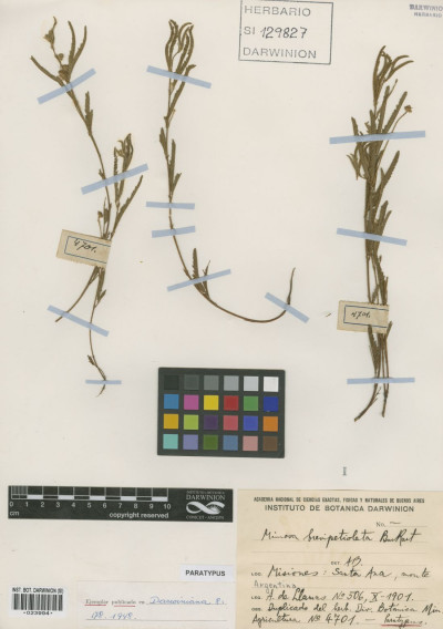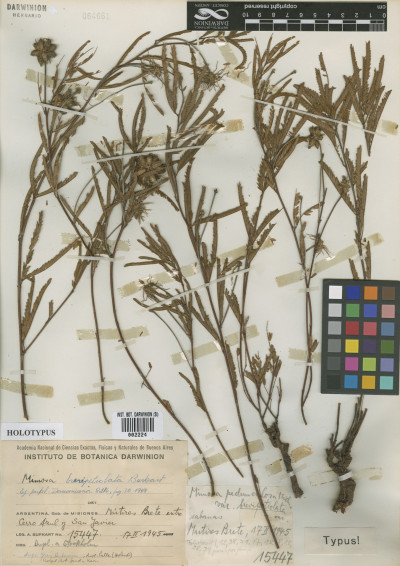 Material Tipo: Argentina. Misiones. Dpto. Candelaria. Mártires, Brete entre Cerro Azul y San Javier, 17 Feb 1945, A. Burkart 15447 (holotipo, SI 002224; isotipos, GH 00064822, K 000532825, L 0019108, S13-12231, SI 002225).