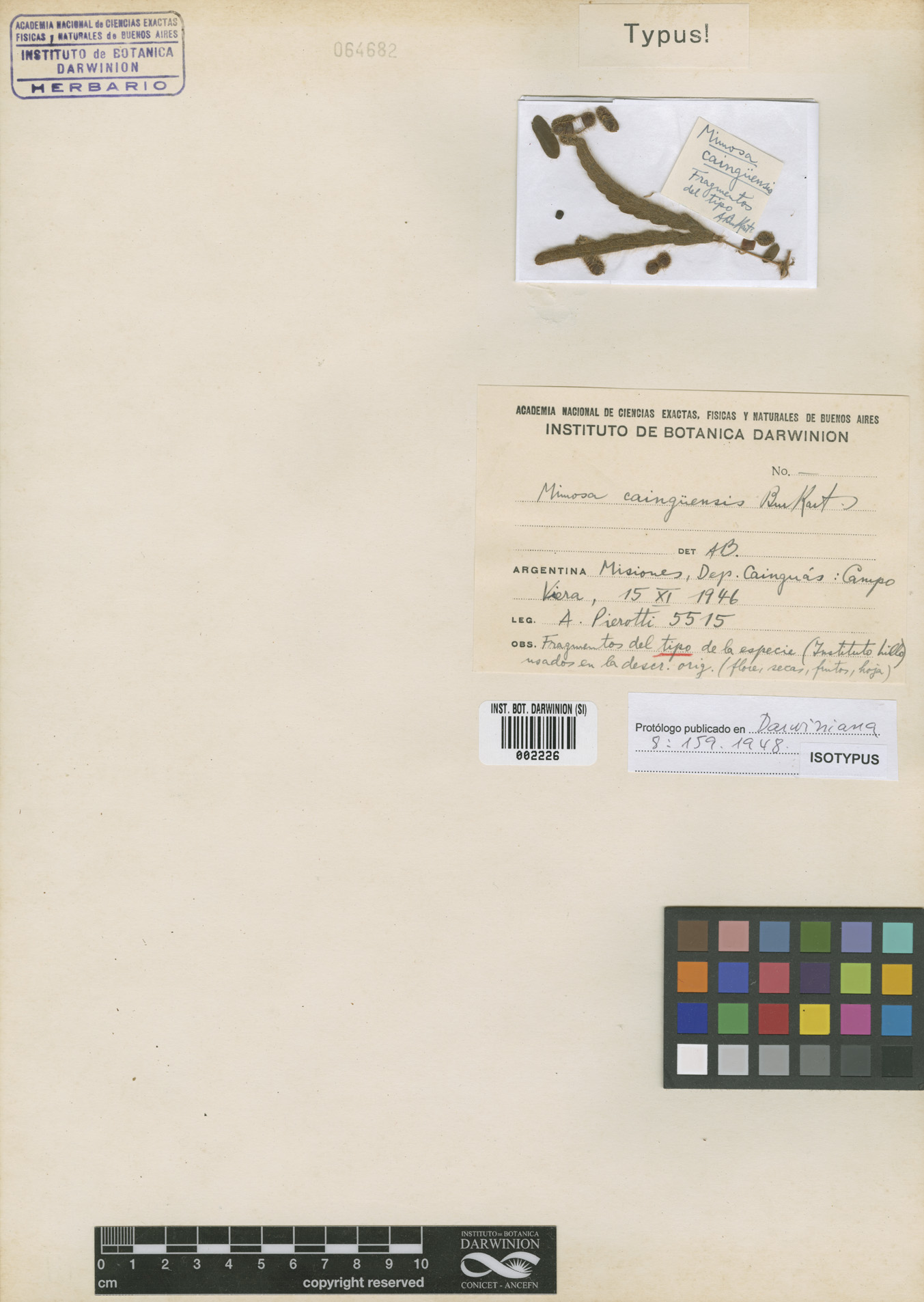 Material Tipo: Argentina. Misiones. Dpto. Oberá. Campo Viera, 15 Nov 1946, S. A. Pierotti 5515 (holotipo, LIL 000635; isotipo, SI 002226).