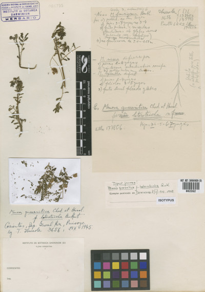 Material Tipo: Paraguay. In campo Tacuaral, Ene 1899, E. Hassler 3817 (G 00400194 [lectotipo, de acuerdo con Tropicos.org], A 00064746, BM 000545285, F 0058438F, G 00400193, G 00400195, K 000504927, MPU 016567, NY 00002839, P 00732607, UC 941481).