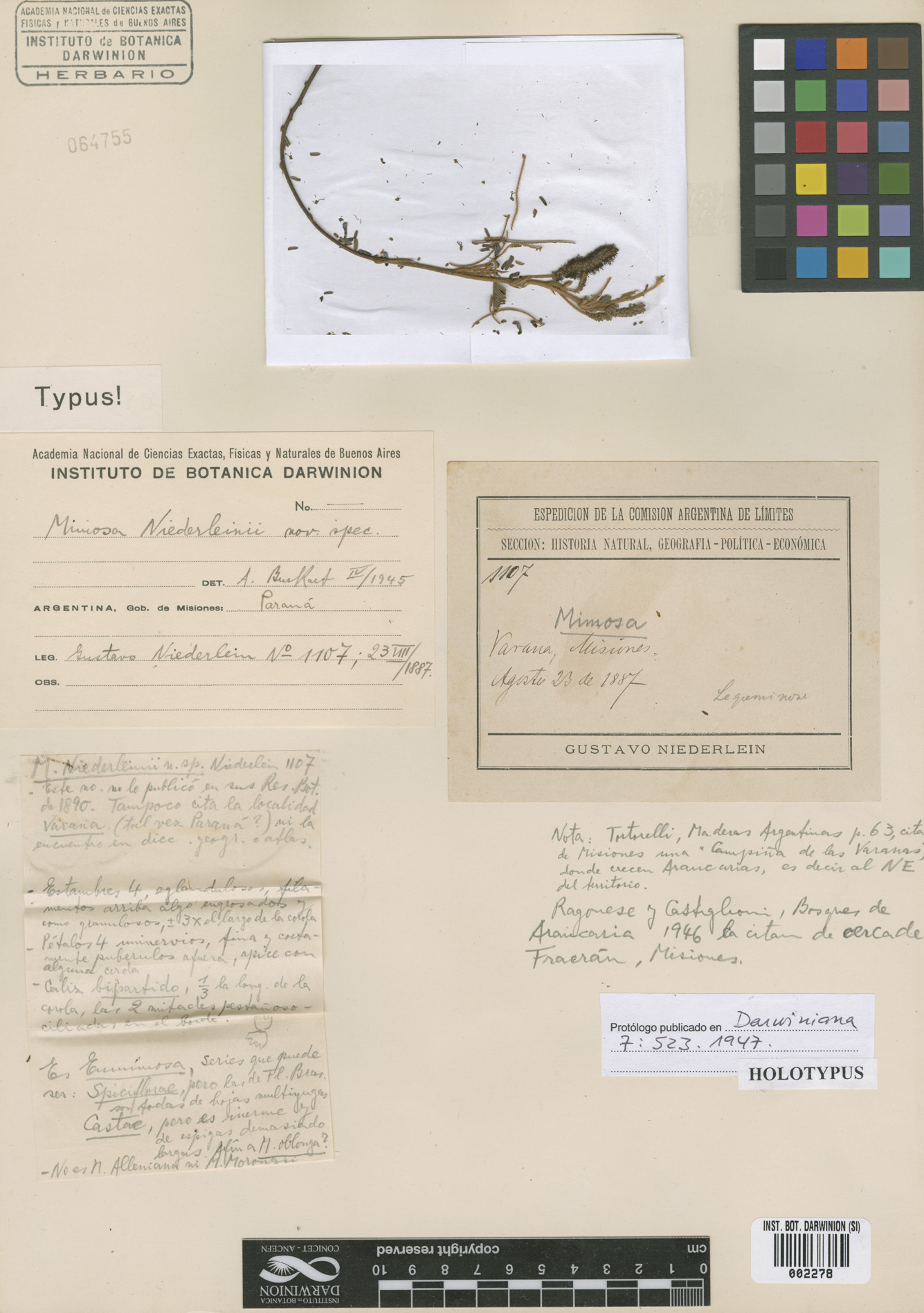 Material Tipo: Argentina. Misiones. Río Paraná, 23 Ago 1887, G. Niederlein 1107 (holotipo, SI 002278).
