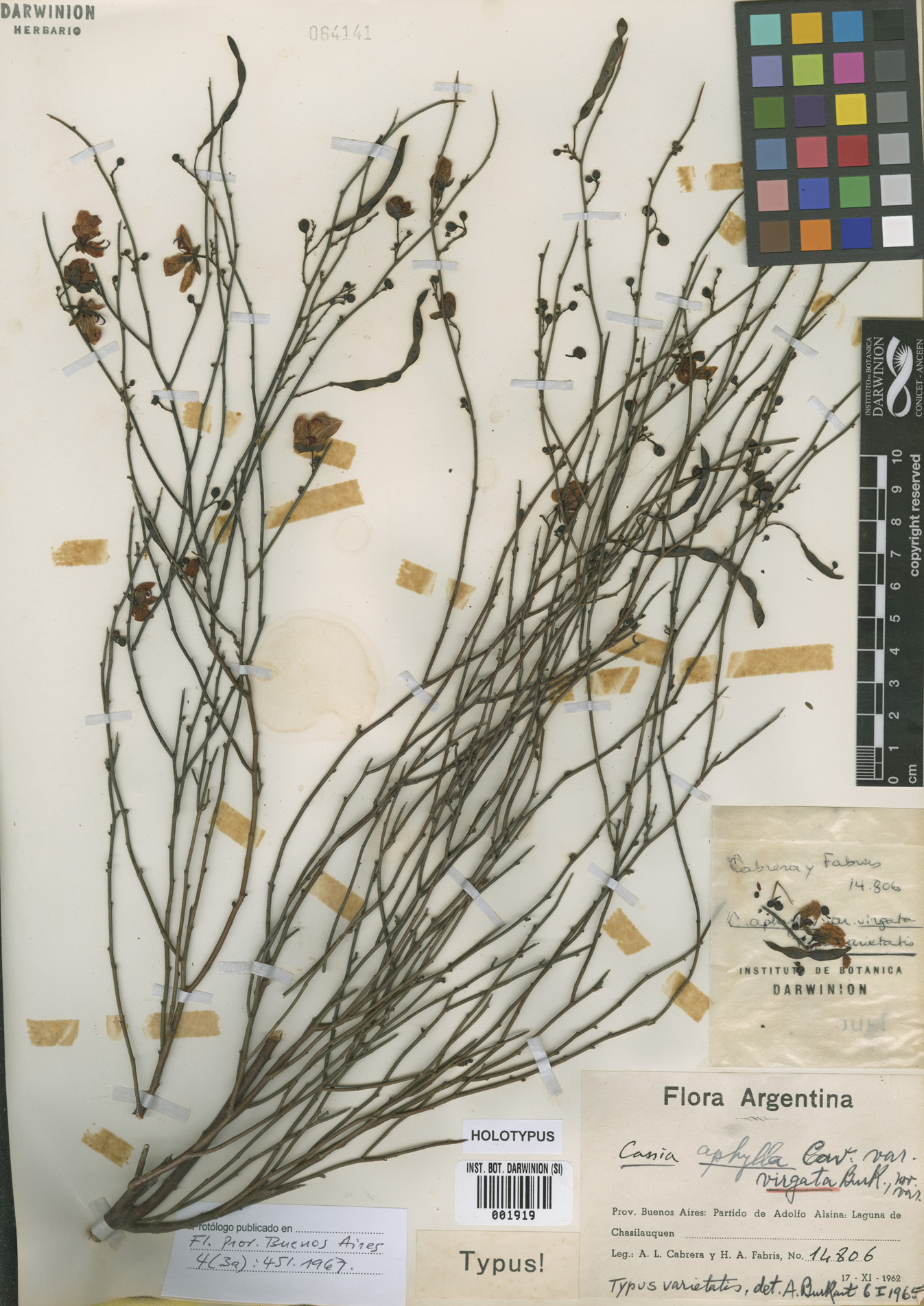 Cassia aphylla Cav. var. virgata Burkart var. virgata Burkart Fl. Prov. Buenos Aires, Colecc. Ci. Inst. Nac. Tecnol. Agropecu. III: 451. 1967