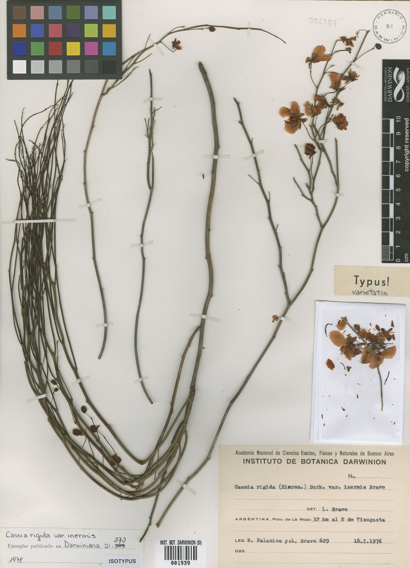 Tipo de Cassia rigida (Hieron.) Burkart var. inermis L. Bravo