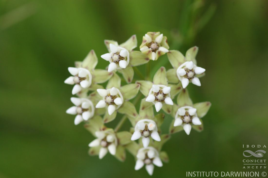 Voluble, de 4-6 m de alto, tallos suberosos en la base, glabros hacia el ápice. Hojas glabras; pecíolo de 2 mm de largo, lámina linear-lanceolada, de 3-5 × 0,2-0,3 cm, base aguda, ápice agudo a acuminado. Inflorescencias umbeliformes, plurifloras, pedúnculo de 3-7 cm de largo, glabro. Flores con pedicelo de 0,8-1 cm de largo, piloso; cáliz con lóbulos ovado-lanceolados, de 2 × 0,8-0,9 mm, glabros en la cara adaxial, pilosos en la abaxial; corola blanca a amarillo-verdosa, tubo brevísimo, lóbulos ovado-lanceolados, de 3 × 2 mm; corona blanca, glabra, más alta que el ginostegio, lóbulos internos gruesos, de aspecto vesiculoso, de 2 × 1,5 mm; ginostegio sésil de 1 mm de alto, 5-gonal; retináculo romboidal, de 0,2 × 0,18 mm; caudículas horizontales de 0,09 mm de largo; polinios subcilíndricos, de 0,6 × 0,18 mm, algo arqueados. Folículos de 6-6,2 cm de largo, superficie lisa, pubérula. Semillas no vistas.