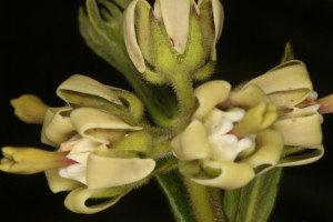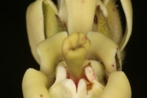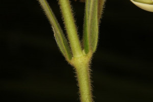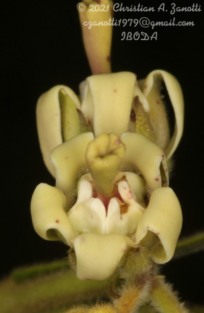 Hierba de 13-100 cm de alto, erecta tallo simple o poco ramificado, pubescente a viloso. Hojas con pecíolo de 1-2 (-4) mm de largo, vilosos; lámina linear, oblonga, elíptica, ovado-elíptica a ovada, de 2-6 × 0,2-2 cm, ápice agudo a brevemente acuminado, base subcordada, truncada a redondeada, borde con frecuencia ondulado, ambas caras vilosas, cara adaxial con coléteres en la base de la vena media. Inflorescencias umbeliformes, extraaxilares y terminales, con 2-9 flores, pedúnculo de 0,2-4 cm de largo, viloso. Flores con pedicelo de 1-8 mm de largo, viloso; cáliz con lóbulos linear-lanceolados, de 3,5-6 × 0,6-2 mm, cara abaxial hirsuta, cara adaxial glabrescente con coléteres en el seno; corola con tubo campanulado de 2,5-5 mm de largo, blanca, amarillenta a verde-vinácea, lóbulos lanceolados a oblongo-lanceolados, de 5,5-9(-12,5) × 1,8-3 mm, retrorso-plegados sobre sí mismos desde el tercio basal, cara abaxial pubescente, cara adaxial glabra; corona glabra, blanca, lóbulos ovales a oblongo-lanceolados, de 3,5-4(-6,5) × 1,5-3 mm, 2-fidos hasta la porción media o más abajo; ginostegio sésil de 3 mm de largo, con apéndice de la cabeza estilar obclaviforme, de 3,5-6,4 mm de largo, grueso, apicalmente 2-lobado o ciatiforme; anteras subcuadrangulares, de 0,7-1 mm de largo; polinarios con el retináculo linear-oblongo, de 0,58-1,1 × 0,1-0,18 mm, caudículas de 0,12 × 0,2 mm, horizontales, dentadas, traslúcidas, con espesamiento oscuro a lo largo del borde basal, polinios oblongo-reniformes, de 0,54-0,76 × 0,16-0,2 mm. Folículos angosto-fusiformes, de 6-13 × 1-1,3 cm, erguidos, generalmente simples, extremos aguzados, pubescentes. Semillas 182-211 por folículo, obovadas, de 5-6 × 3-4 mm, ápice dentado, verrucosas, pardo-castañas. Subsp. capitatum.- Láminas lineares, lanceoladas a oblongas, ápice agudo a acuminado; apéndice de la cabeza estilar 2-fido solamente en el ápice.