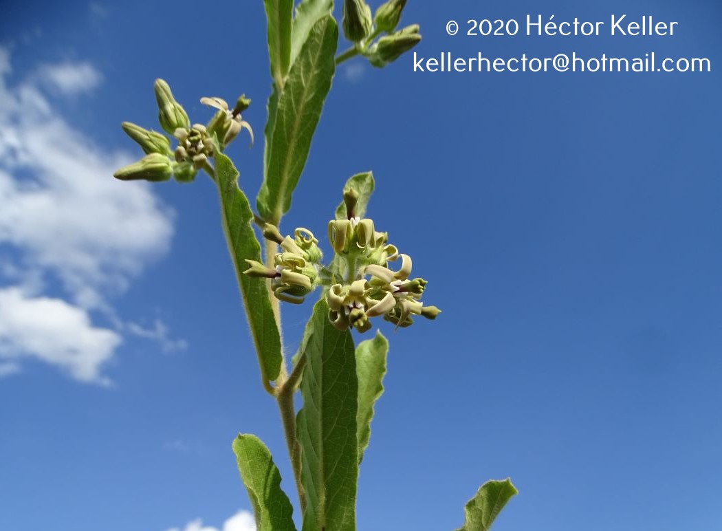 Hierba de 13-100 cm de alto, erecta tallo simple o poco ramificado, pubescente a viloso. Hojas con pecíolo de 1-2 (-4) mm de largo, vilosos; lámina linear, oblonga, elíptica, ovado-elíptica a ovada, de 2-6 × 0,2-2 cm, ápice agudo a brevemente acuminado, base subcordada, truncada a redondeada, borde con frecuencia ondulado, ambas caras vilosas, cara adaxial con coléteres en la base de la vena media. Inflorescencias umbeliformes, extraaxilares y terminales, con 2-9 flores, pedúnculo de 0,2-4 cm de largo, viloso. Flores con pedicelo de 1-8 mm de largo, viloso; cáliz con lóbulos linear-lanceolados, de 3,5-6 × 0,6-2 mm, cara abaxial hirsuta, cara adaxial glabrescente con coléteres en el seno; corola con tubo campanulado de 2,5-5 mm de largo, blanca, amarillenta a verde-vinácea, lóbulos lanceolados a oblongo-lanceolados, de 5,5-9(-12,5) × 1,8-3 mm, retrorso-plegados sobre sí mismos desde el tercio basal, cara abaxial pubescente, cara adaxial glabra; corona glabra, blanca, lóbulos ovales a oblongo-lanceolados, de 3,5-4(-6,5) × 1,5-3 mm, 2-fidos hasta la porción media o más abajo; ginostegio sésil de 3 mm de largo, con apéndice de la cabeza estilar obclaviforme, de 3,5-6,4 mm de largo, grueso, apicalmente 2-lobado o ciatiforme; anteras subcuadrangulares, de 0,7-1 mm de largo; polinarios con el retináculo linear-oblongo, de 0,58-1,1 × 0,1-0,18 mm, caudículas de 0,12 × 0,2 mm, horizontales, dentadas, traslúcidas, con espesamiento oscuro a lo largo del borde basal, polinios oblongo-reniformes, de 0,54-0,76 × 0,16-0,2 mm. Folículos angosto-fusiformes, de 6-13 × 1-1,3 cm, erguidos, generalmente simples, extremos aguzados, pubescentes. Semillas 182-211 por folículo, obovadas, de 5-6 × 3-4 mm, ápice dentado, verrucosas, pardo-castañas. Subsp. capitatum.- Láminas lineares, lanceoladas a oblongas, ápice agudo a acuminado; apéndice de la cabeza estilar 2-fido solamente en el ápice.