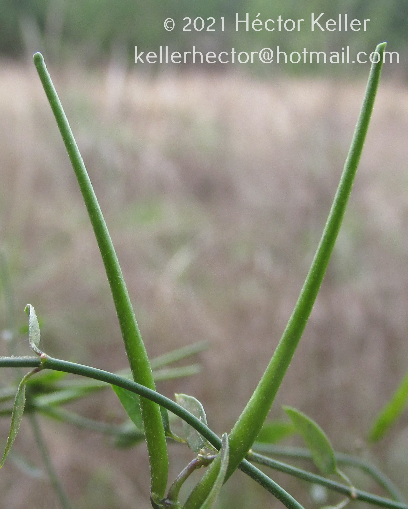 Plantas volubles, de 1-4 m de alto, base leñosa, corteza suberosa agrietada, rámulos cortos y largos diferenciados; con tricomas reflexos dispuestos en líneas longitudinales. Hojas con pecíolo de 2-4 mm de largo, con 0-2 coléteres en la base de la cara adaxial; lámina ovada, de 5-30 × 2,5-12 mm, base cordada a subcordada en la base del tallo, redondeada más arriba, ápice agudo a acuminado, cara adaxial pubérula, cara abaxial glabra. Inflorescencias extraaxilares, 1(-2) por nudo, sésiles, con 2-7 flores. Flores con pedicelo de 1,8-2,2 cm de largo, glabro a piloso; cáliz rotáceo o campanulado, con pocos tricomas en la base abaxial, con coléteres bajo el seno adaxial, lóbulos fusionados en la base, ovados, de 0,9-1,2 × 0,5-0,6 mm, ápice agudo; corola rotácea a campanulada, de 1,4-1,6 × 2-2,5 mm, blanquecina, amarillenta o verdosa, adaxialmente algo papilosa, lóbulos ovados a triangulares, de 0,5 mm de ancho, fusionados en el cuarto basal, ápice agudo, patentes, recurvos a horizontales; corona estaminal de 1-1,3 mm de alto, lóbulos lanceolados apenas fusionados en la base, agudos, erectos; ginostegio cilíndrico, de 0,8-1,1 × 0,6-0,7 mm, sésil; anteras de 0,5-0,6 mm de largo, apéndices conectivales obcordados, de 0,3 × 0,3 mm, fuertemente inflexos; retináculo elipsoide, de 0,12-0,13 × 0,03-0,05 mm; caudículas con forma de “S”, de 0,06 mm de largo; polinios ovoides a reniformes, de 0,11-0,13 × 0,03-0,04 mm. Folículos geminados o simples, angostamente fusiformes, de 25-35 × 1,5-2 mm, glabros, ángulo entre mericarpos cerca de 35°. Semillas 4-6 por folículo, comosas, ovadas, de 6-6,5 × 2,5 mm.