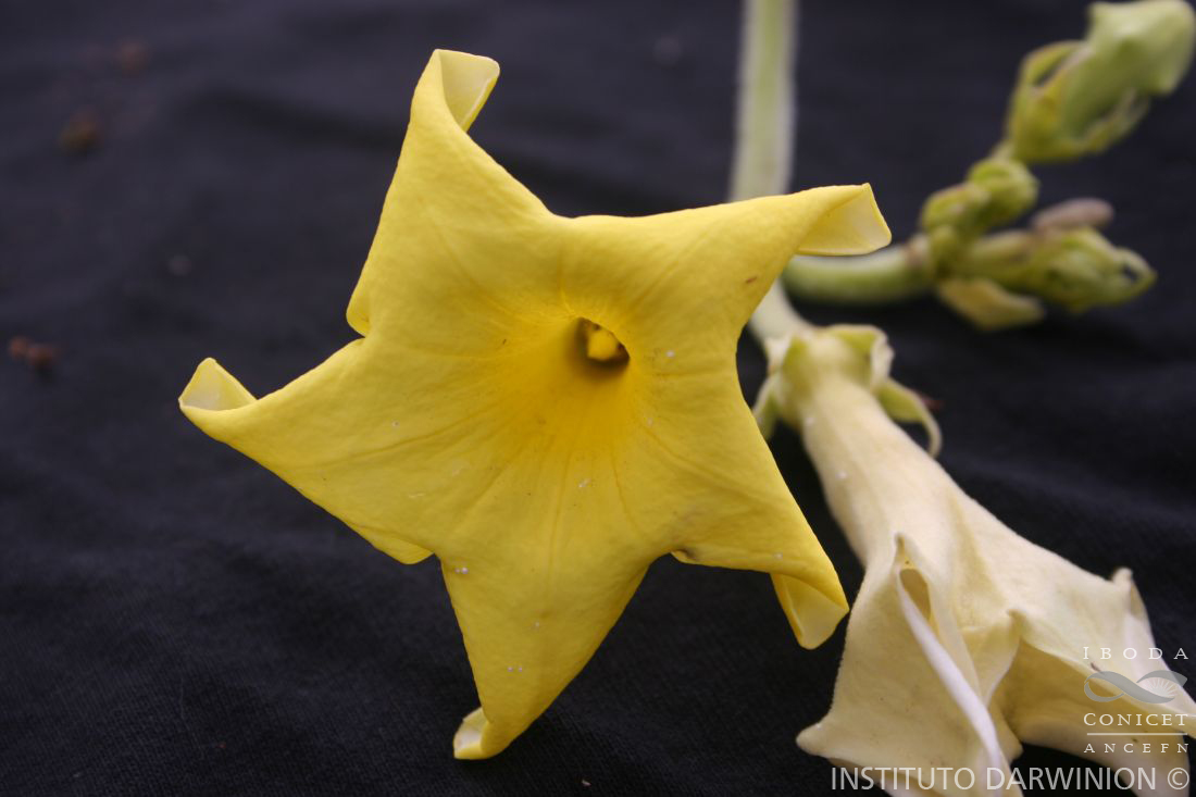 Voluble de varios metros de alto, ramificada, con ramas con pubescencia amarillenta, aterciopelada. Hojas con pecíolo de 4-5 cm de largo, tomentoso; lámina ovada, de 12-15 × 8-10 cm, la base cordada, ápice largamente acuminado, cara adaxial verde grisácea, con tricomas esparcidos, cortos, cara abaxial albo-tomentosa, aterciopelada, discoloras. Inflorescencias corimbiformes, con 8-15 flores, con pedúnculo hasta de 15 cm de largo, tomentoso. Flores con pedicelo de 1,3-1,5 cm de largo, tomentoso; cáliz con lóbulos linear-lanceolados, de 10-13 × 3 mm, cara abaxial tomentosa, cara adaxial pubescente; corola amarillo-limón, tubo de 2,5-3 × 1-1,5 cm, externamente tomentoso, internamente glabro, lóbulos subtriangulares, de 1,5-1,8 × 1-1,2 cm, cara abaxial tomentosa, cara adaxial glabra; corona ginostegial ausente; ginostegio subsésil, de 6 mm de alto; anteras sagitado-auriculadas, de 4 mm de largo, la membrana apical ovado-oblonga, de 2,5 mm de largo, de ápice obtuso; apéndice de la cabeza estilar grueso, cónico, de 3 mm de alto, brevemente 2-furcado en el ápice; polinario con retináculo linear-lanceolado, de 3 × 0,5 mm, caudículas horizontales de 0,25 mm de largo, algo aplanadas, polinios ovoide-oblongos, de 1,4 × 0,4 mm. Folículos de contorno oblongo-alargado de 11 × 3,5 mm, de ápice atenuado, superficie aterciopelada. Semillas obovoides, de 5 × 3 mm, superficie rugosa, parda.