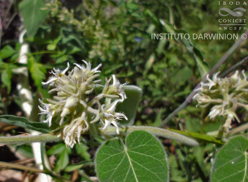 Voluble de varios metros de alto, con las ramas vilosas. Hojas con el pecíolo de 4-6 cm de largo, viloso; lámina triangular-ovada a elíptica, de 5-11 × 2-9 cm, de base cordada, ápice acuminado, cara abaxial blanco-lanosa, cara adaxial verde-claro y con tricomas esparcidos. Inflorescencias umbeliformes, plurifloras, con pedúnculo de 4-5 cm de largo, viloso. Flores con pedicelo de 0,8-1 cm, viloso; cáliz con los lóbulos linear-lanceolados, de 4-5 × 0,8 mm, viloso en ambas caras, coléteres presentes debajo del seno interno; corola con tubo campanulado-urceolado, de 3 × 3 mm, cara externa tomentosa, cara interna barbada hacia el ápice, con lóbulos reflexos, de 8 × 2,5 mm, cara abaxial tomentosa, cara adaxial barbada; corona ginostegial ausente; ginostegio subsésil, de 2 mm de alto; anteras de 1 mm de largo, la membrana apical obovada, de 0,6 mm de largo; apéndice de la cabeza estilar 2-fido, filiforme, de 7 mm de largo; polinario con retináculo ovoide, de 0,40-0,47 × 0,20-0,25 mm, caudículas levemente descendentes, de 0,07-0,12 mm de largo, polinios piriformes, de 0,45-0,50 × 0,20-0,25 mm. Folículo ovoide, de 5,3-7 × 1,9-2,5 cm, de base y ápice abruptamente estrecho, superficie acanalada, lanosa. Semillas más de 50 por folículo, con un penacho de pelos de 1,3-1,6 cm de largo.