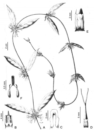 Observaciones: Florece de noviembre a marzo y hallada en fruto en abril. Se han observado avispas de la familia Pompilidae (Pepsis sp.) visitando sus flores, las cuales huelen a jazmín. De los tres pliegos del tipo conservados en S, dos tienen abundantes flores, pero el que se designa aquí como lectotipo, S12-13249, coincide con el protólogo y presenta una mayor variabilidad en el tamaño de las hojas.