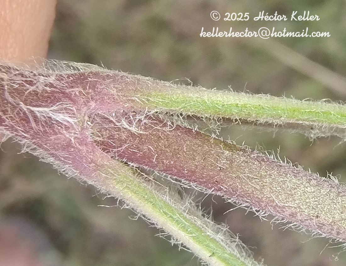 Sufrútices hasta de 50 cm de alto; tallos híspidos, principalmente sobre las aristas. Hojas con peciolos de 5-7 cm de largo; láminas elípticas, de 2-8 × 3-5 cm, base aguda, ápice agudo u obtuso, margen marcadamente crenado-dentado-lobulado, membranáceas, estrigosas en la cara abaxial, glabras en la adaxial. Verticilastros de 5-7 flores, reunidos en pseudoracimos terminales laxos o densos, de 10-20 cm de largo. Brácteas florales persistentes, elípticas, de 4-5 mm de largo, no amplexicaules, híspidas, de color verde. Flores con pedicelos de 2-3 mm de largo. Cáliz de 5-7 mm de largo, 5-nervado, labio superior con ápice 3-dentado, el diente medio menor, labio inferior con ápice 2-dentado, híspido, con pelos largos en los margenes y hacia la base. Corola color violeta o lila, con mácula estriada blanca, ca. 8 mm de largo, tubo ca. 5 mm de largo, pubescencia escasa en la mitad superior externa, anillo oblicuo de pelos en la parte interna de la corola cerca de la base, labio superior de 5-8 mm de largo, cóncavo, emarginado, labio inferior de 7-9 mm de largo, 3-lobado, el medio mayor y emarginado. Estambres inclusos. Estilo exerto, hasta de 7 mm de largo. Clusas ovoides, de 2,5 mm, castaño oscuras, finamente granulosas.