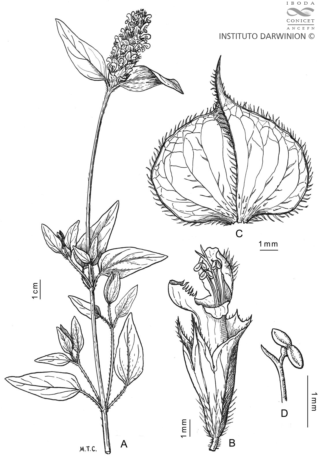 Hierbas perennes, a veces anuales o bianuales, hasta de 60 cm de alto; tallos erectos o decumbentes, a veces rastreros, glabros a pubérulos en la parte superior. Hojas con pecíolo de 0,5-2,5 cm de largo, las superiores sésiles o subsésiles; lámina ovada de 1-5 × 0,5-2,5 cm, base atenuada o truncada, ápice agudo, margen liso, a veces algo serrado, glabras a pubérulas. Inflorescencias formadas por verticilastros 6-floros, reunidos en pseudoespigas terminales densas de 2-6 cm de largo, entrenudos breves; brácteas imbricadas, sésiles, anchamente ovadas, de 5- 10 × 5-15 mm, ápice acuminado, margen ciliado, retinervadas. Cáliz bilabiado de 5-12 mm de largo, velloso en la mitad inferior, labio superior ciliado a lo largo de 2 pequeñas alas laterales, margen hispídulo, dientes breves o algo aristados, labio inferior con 2 dientes muy agudos; corola de 7-12 mm de largo, púrpura, violeta, rojiza o blanca, tubo poco exerto, labio superior glabro o algo piloso, entero a emarginado; estambres superiores de 1-3 mm de largo, los inferiores de 2-8 mm de largo. Clusas ovoides, ca. 1,8 mm de largo, trígonas, apículo recto, cara ventral con conspicua línea castaño-rojiza.