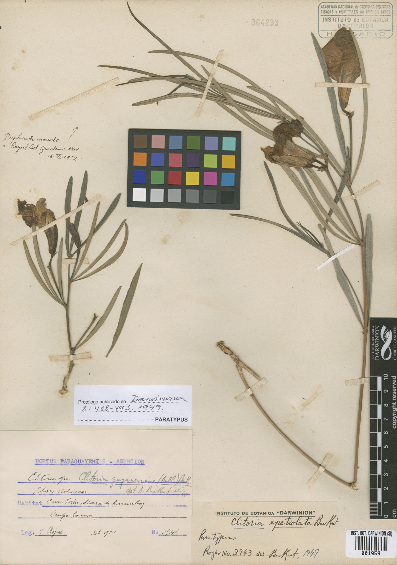 Material Tipo: Argentina. Corrientes. Dpto. Saladas. Saladas, Feb 1917, L. L. Hauman 423D (holotipo, BA-12027; isotipo, SI 001958).