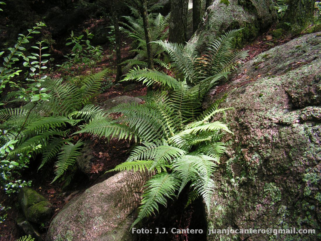 Rizomas erectos o ascendentes, de 1-3 cm de diámetro; escamas rizomáticas lanceoladas, angostas, de 10-20 × 1,5-2 mm, crispadas, castaño-anaranjadas, algunas más oscuras en el centro. Frondes aglomeradas, laxas, de 35-120 × 12-30 cm; pecíolos acanalados dorsalmente, de 1/3 la longitud de la fronde, con escamas ovado-lanceoladas, de 15-20 × 3-5 mm, margen ciliado hacia la base, castaño oscuras a negras y bicolores con transición neta del castaño anaranjado pálido en los márgenes al atropurpúreo en el centro; láminas alrededor de 2,5 veces más largas que anchas, elíptico-lanceoladas, 2- pinnadas, ápice acuminado, verde oscuras, ejes y pínnulas con pelos glandulares 1-celulares; raquis verdes a verdeamarillentos, cubiertos de escamas triangulares a estrechamente lanceoladas, de 5-6 × 1-2 mm, ciliadas, concoloras, de color castaño-anaranjado pálido; pinnas 6-7 veces más largas que anchas, largamente pinnatífidas, perpendiculares al raquis o ascendentes, contiguas a moderamente distanciadas, pinnas basales descendentes y reducidas, ca. 3/4 de la longitud de las pinnas medias; pínnulas 2 veces más largas que anchas, oblongas, trapezoidales, cartáceas, con la base asimétrica y auriculada, margen aserrado con espínulas bien desarrolladas (especialmente en el margen acroscópico), escamas filiformes en el lado abaxial. Soros redondeados dispuestos en toda la lámina, sin indusio. Esporas de 30-35 µm de largo, castaño oscuras; perisporio alado, alas anastomosadas, superficie equinado-perforada.