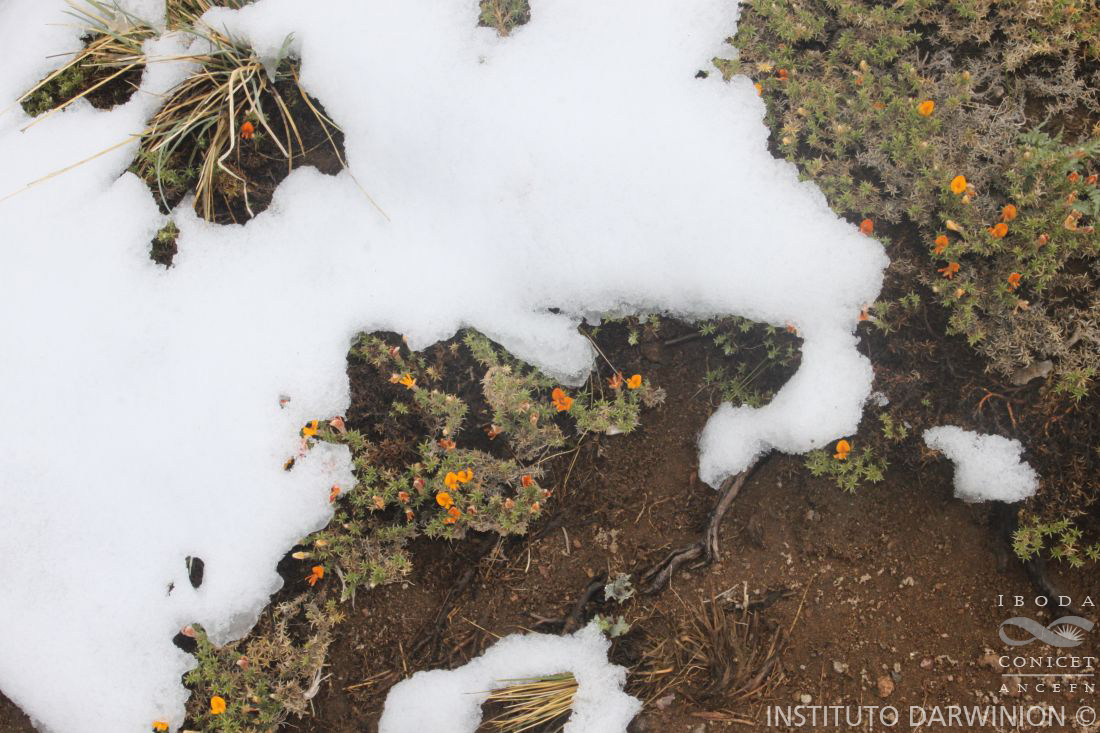 Cojín rastrero, ramoso y hojoso hacia el ápice. Hojas vaginadas, con escasa pubes¬cencia entre los nervios, folíolos de 2-4 (6) mm, levemente recurvos, mucronados, el cen¬tral insertado algo posterior con respecto a los laterales; estípulas de 3,5-5 mm, ± pubes¬centes en la cara interna, unidas entre sí y al pecíolo por 1-2 mm. Flores de 13-15 mm, terminales, solitarias, amarillo-anaranjadas; pedúnculos de 2,5 mm; bractéolas 2, lineares, mucronadas. Cáliz de 8 mm, pubescente, tubo de 4 mm, dientes del lóbulo inferior ma¬yores que la mitad de longitud de dicho lóbulo; el cáliz se rasga entre los dientes superio¬res a medida que el fruto se desarrolla. Vexilo de 13 x 6,5 mm, pubescente hasta los bor¬des, con ápice carinado; alas de 13 x 3 mm, auriculadas, pubescentes desde la parte me¬dia hacia el borde inferior, uñas de 4 mm; quilla de 11 mm, pubescente en la parte infe¬rior, uña de 4 mm. Androceo de 10 mm. Ovario de 6 mm, 2-ovulado, hirsuto, estilo fili¬forme, glabro en la mitad superior, estigma capitado. Legumbre de 13-15 x 6,5 mm, pu¬bescente, 1-2-seminada.