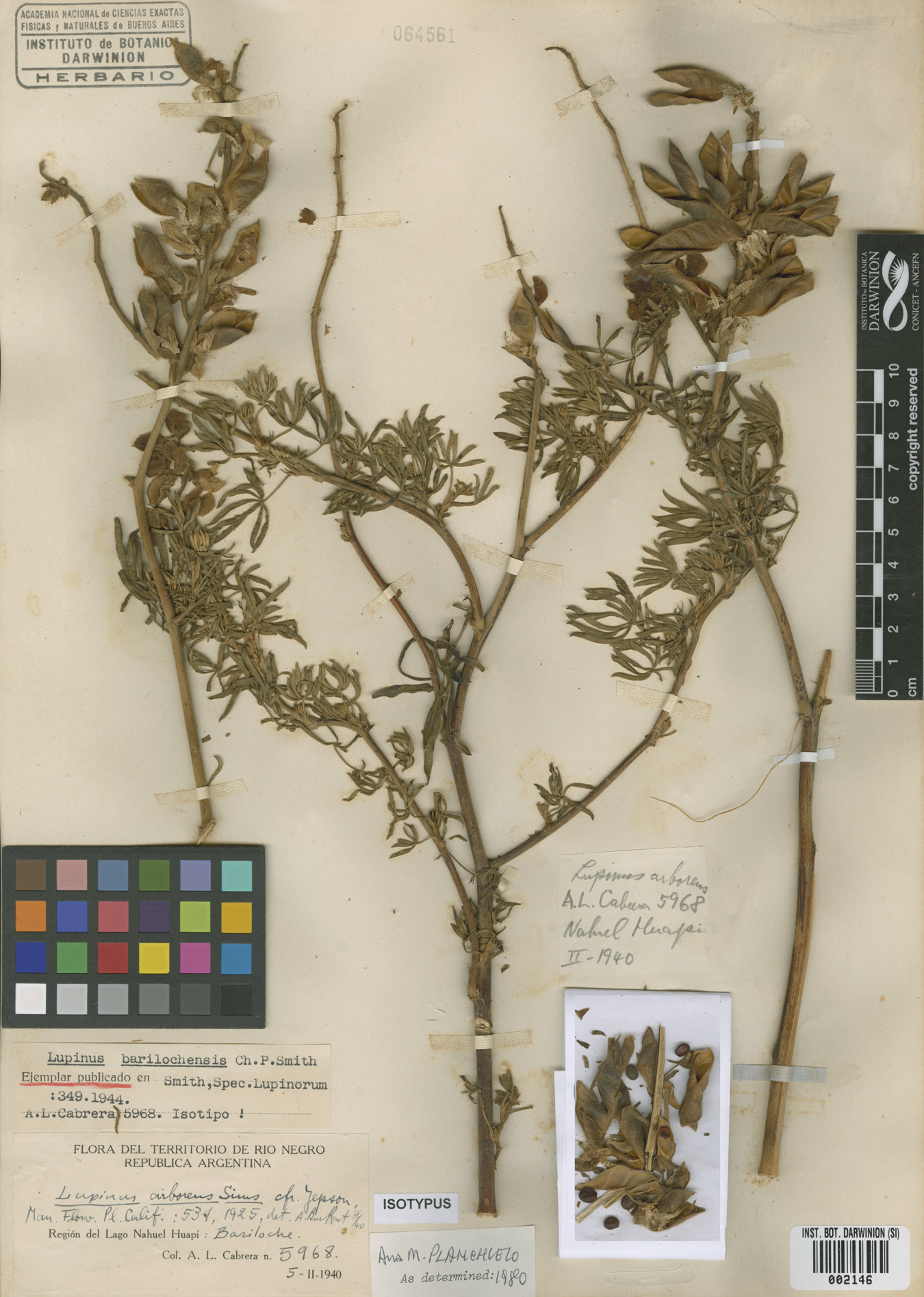 Arbusto de T-2,~50Tnalt.,"ramificado. Tallos leñosos, con pubescencia adpresa. Hojas "7-9-folioladas, estípulas de 5-6 Trini, con kepafte libre de 3 xl rrrrn; pecíolo de-2-3 cm; folíolos de -15-40 x 4-"7 Trrni, oblanceolados, :gerremtrnente conduplicados,-glabros en la cara adaxial, aplicadamente pilosos -en la abaxial, obtusos, acuminados. Racimos subver-ticilados; brácteas í x "-1,2 mm, pilosas en la cara abaxial. caedizas; pedicelos de 4^ nim. Cáliz piloso en ambas caras, labio inferior de~7-9 x 3-4 mm, ápice 3-dentado, dien¬tes menerres íle 1 tam, labio-superior deÍ5-"77rím,-2-lobado, lóbulos de 1 x 1 mm; bracté¬olas de 1-2 x 0,5 mm. Corola amarilla: vexilo de 15 x 14-15 mm, orbicular a subor¬bicular,-glabro, reflexo formando un ángulo de aprox. 140°, brevemente unguiculado; alas de 15-16 x "8-9 mm, anchas, uña de-2 mm; quilla de 4 mm de ancho en la parte me¬dia, formando un ángulo de "89-90°, ciliada a lo largo del borde superior. Ovario 6-10-ovulado. Legumbre de 3*4 x 1 cm.Semillas deij x 4 mm, castañas.