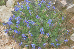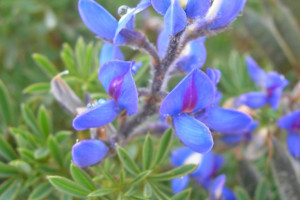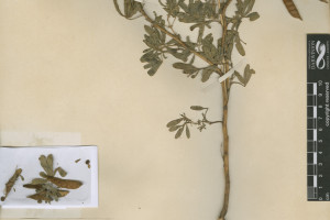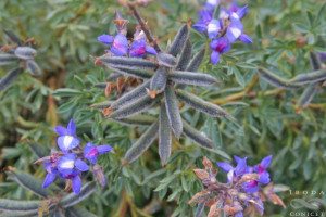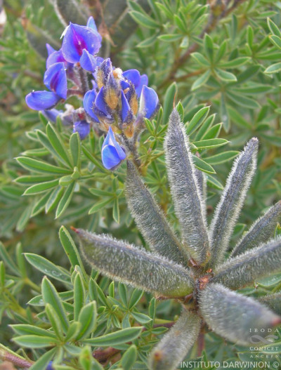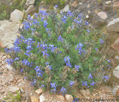 Hierba anual o bienal, muy ramificada en la parte apical, 20-30 cm alt., tallo leñoso 2-3 mm diám., estrigoso, pelos 0,3-1,5 mm long; entrenudos 1-2,5 cm. Hojas (4-) 5-7 (-8) -folioladas; estípulas estrigosas en el dorso, 4-8 mm long., con la parte libre lineal o angostamente ovada 3-6 mm long. x 0,7-0,8 mm lat.; pecíolo 1,5-2,5 cm long., folíolos angostamente obovados , 2-2,5 cm long. x 0,35-0,6 cm lat., cara adaxial glabra, abaxial estrigosa, ápice obtuso Racimos 6-10 cm long. Flores 12-15 mm long., brácteas ovadas 3-5,5 mm long.x (1,5-) 2-2,5 mm lat. pilosas en el dorso; pedicelos 2-8 mm long.; bractéolas ovadas, 2-2,5 mm long. x 0,8-1,5 mm lat., adheridas en la mitad del tubo calicinal. Cáliz seríceo exteriormente, con algunos pelos en la cara interior del ápice de los labios; labio inferior triangular 6-6,7 mm long. x 2,5-3 mm lat., ápice con un diente central, 1 mm y dos incipientes laterales; labio superior 4-4,5 mm, bífido, lóbulos 2-3 mm long. x 2 mm lat., corola azul violácea glabra; estandarte oval u oblogo-ovado 10-11 mm long. x (7-) 8-9 mm lat., uña 2 mm; alas 11-12 mm long. x 5-6 mm lat., uña 2 mm; quilla glabra 3-4 mm lat. . Ovario 5-8- ovulado. Legumbres seríceas 3,5-4,5 cm long. x 0,7-0,8 cm lat. Semillas color castaño claro con manchas oscuras 3,8 x 3,1 mm.
